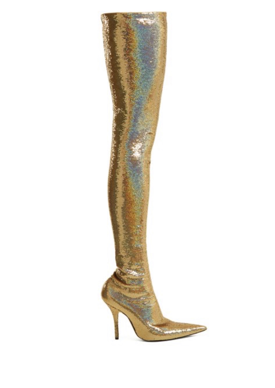 The piece de resistance? Her $4,000 thigh high glittery gold Balenciaga boots. She. Better. Slay.