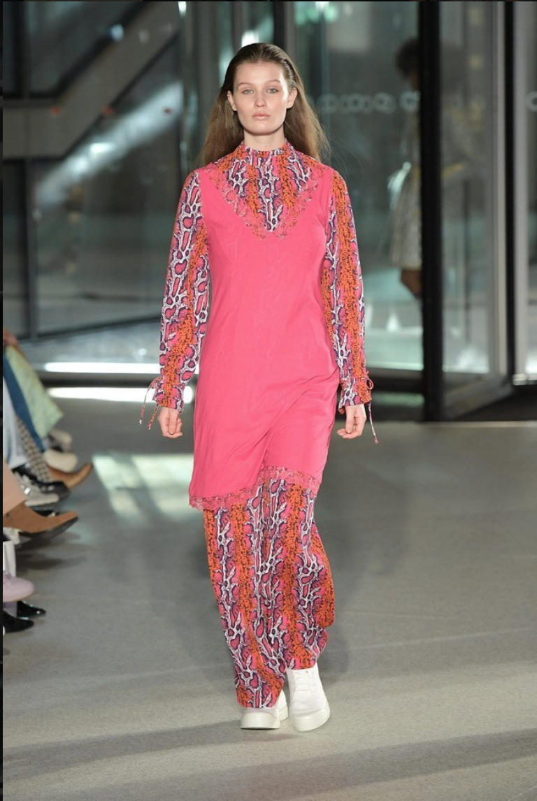 Ganni is Copenhagen-based brand rooted rooted in the high-end aspect of Scandinavian fashion and Boho chic. The AW19 captures the essence of the brand as it has elements of high fashion and playfulness with energetic prints such as florals, animal print, and stripes.
