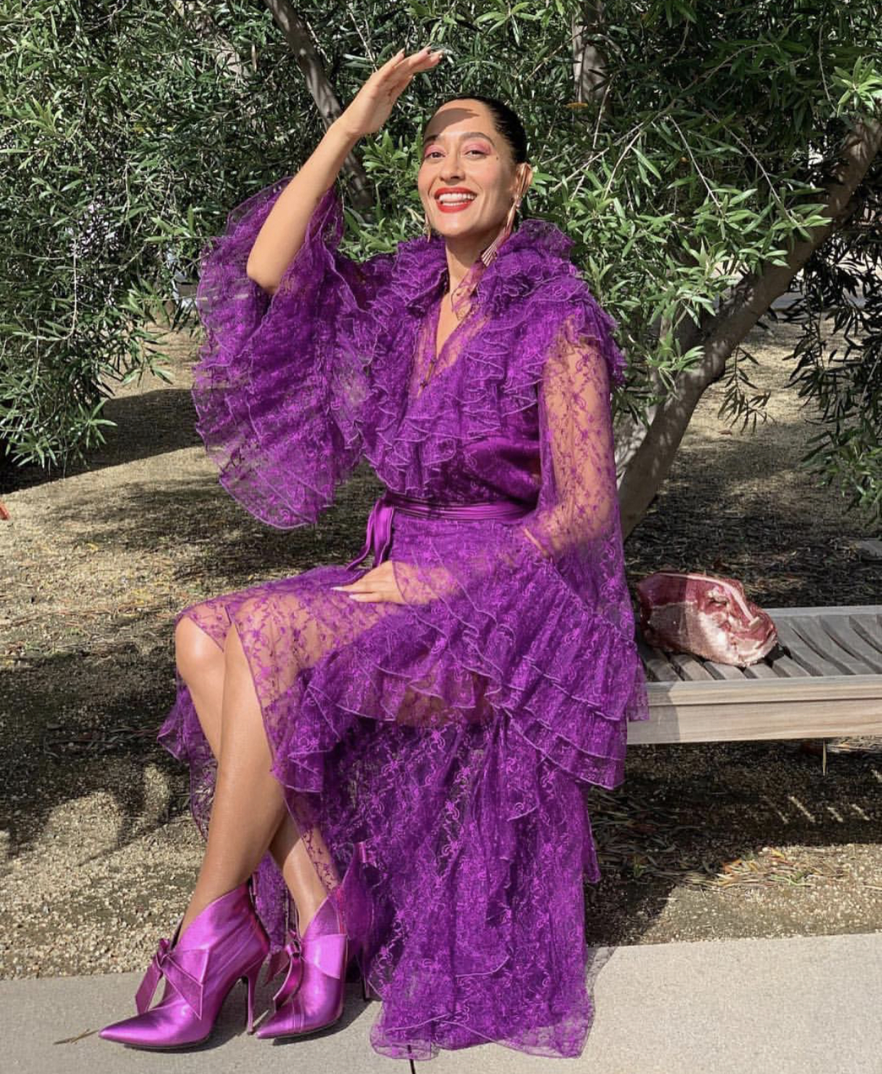 Tracee Ellis posed for the ‘gram looking ever-so chic in this purple Rodarte ensemble!