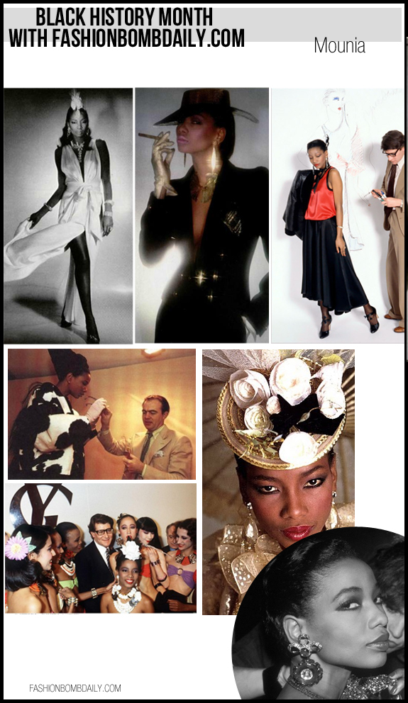 In a 2008 W magazine article, Mounia remembered Yves Saint Laurent. She said, “I was his first black muse…He helped open the door for black models. Sometimes I was his confidante, and I would sometimes inspire his creativity. He called me Moumounn. The collection that made me a celebrity was the one inspired by Porgy and Bess. I wore a pink pantsuit and a boater hat. I walked to ‘Summertime’ and really took on the character of Bess. Catherine Deneuve stood up and started clapping. The everyone stood up and called out ‘Bravo!’ Yves Saint Laurent peered around the curtain – a thing that he had never done before – to see what all of the commotion was about. The people were shouting ‘Bravo, Yves Saint Laurent!’ and ‘Brava, Mounia!’ He took me in his arms, and we kissed. This for me was history…After that I had more than 15 covers…Mr. Fairchild gave me my first cover [of WWD], and [French Vogue’s] Francine Crescent gave me 27 pages. This was the first time that a black model had arrived in haute couture. I say thank you to Monsieur Yves Saint Laurent and thank you to Monsieur Pierre Bergé. My last word for Yves Saint Laurent is ‘love.'”