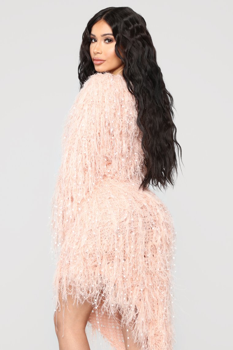 Is it cool if we make Angela Simmons blush? Much like the color of this chic Fashion Nova find, because I know I won’t be alone completely raving over this extremely stylish dress full of fringed goodness. Angela, giving you a casual feel, looks like an absolute dolled up tomboy pairing the ‘Serenity Fringe Sweater Dress’, with Off__White’s Converse ‘Chuck 70’ high sneakers. Found in the colors of both blush and rust, you can find it here for a steal of $75, Bombers!