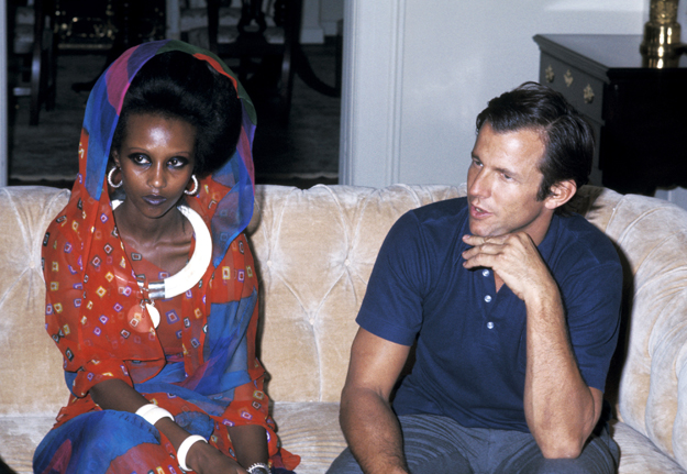 Iman was the daughter of a diplomat father and a gynecologist mother. Fluent in five languages, the model and successful entrepreneur was a student studying political science at Nairobi University when she was discovered by American photographer Peter Beard (pictured with the model above).