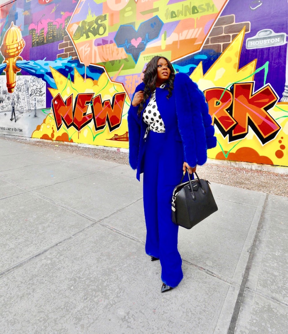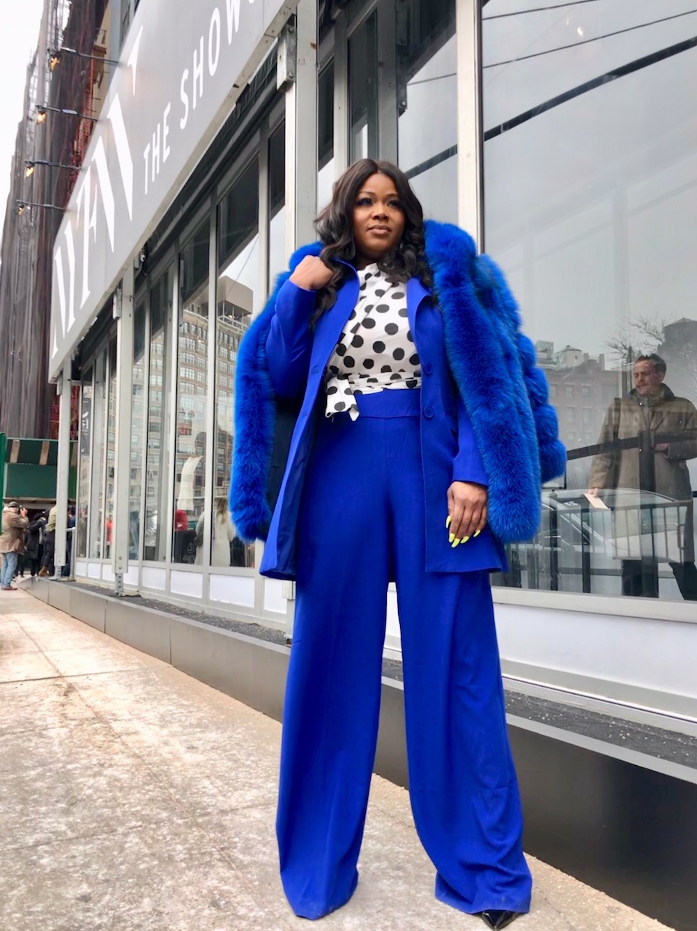 Day 5, I went with another Hanifa look: A blue suit topped off by a Daniel’s Leather coat: