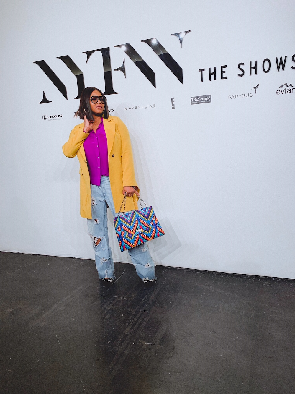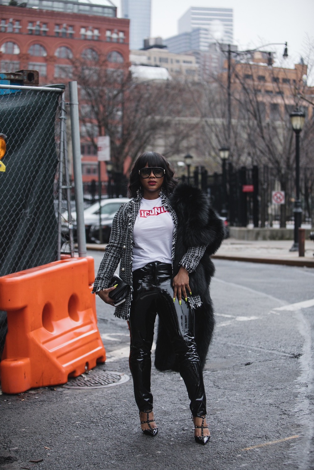 On Day 1, I attended the Tadashi Shoji show at Spring Studios in an Iconic tee by The Haus NYC, along with patent pants and a blazer by Elegant by Alice:
