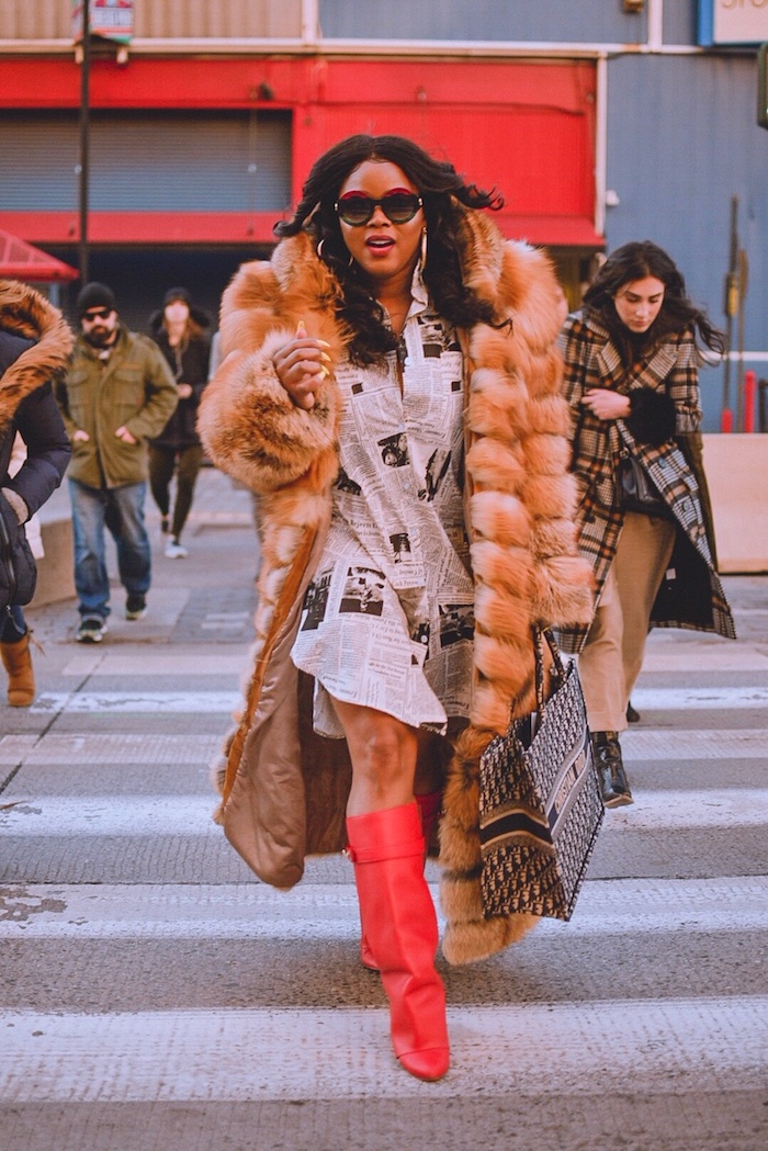 Day 3, the temperature dipped! It was all about a Daniel’s Leather coat, a newspaper print dress by the Vault by Sacha, and a Dior Book Tote from Glamshock.com.