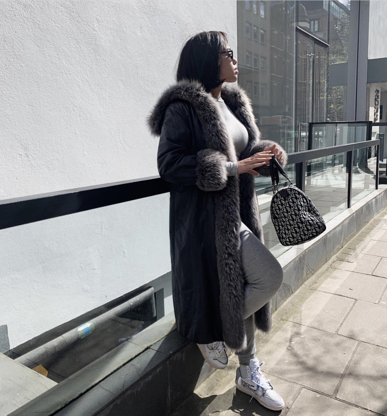 Jordyn Woods is currently in London promoting her Lash partnership with Eylure and she has been giving us some serious #Styleinspo. Jordyn has been spotted out and about attending events, and dinners, and posting the occasional selfie with looks that make us stop scrolling and double tap. On one of her first days there, she served a look in a Sami Miro Vintage distressed black leather trench with hood and faux fur trim.