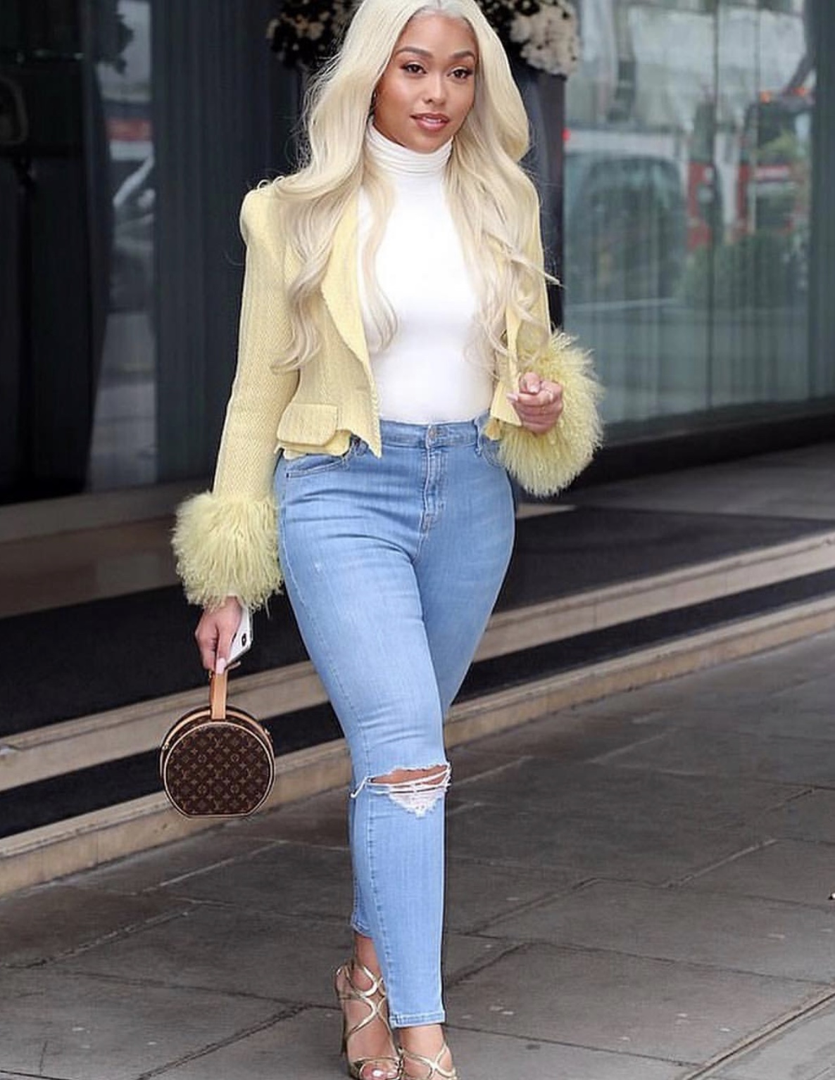 She gave us another look from the brand in a yellow fitted cardigan. Jordyn also slayed sideways in a dress from online store Myaemade. Jordyn isn’t shying away from attention with her new blonde hair either. She is definitely keeping up with her style amid all the drama. How are you feeling Jordyn’s London Looks?