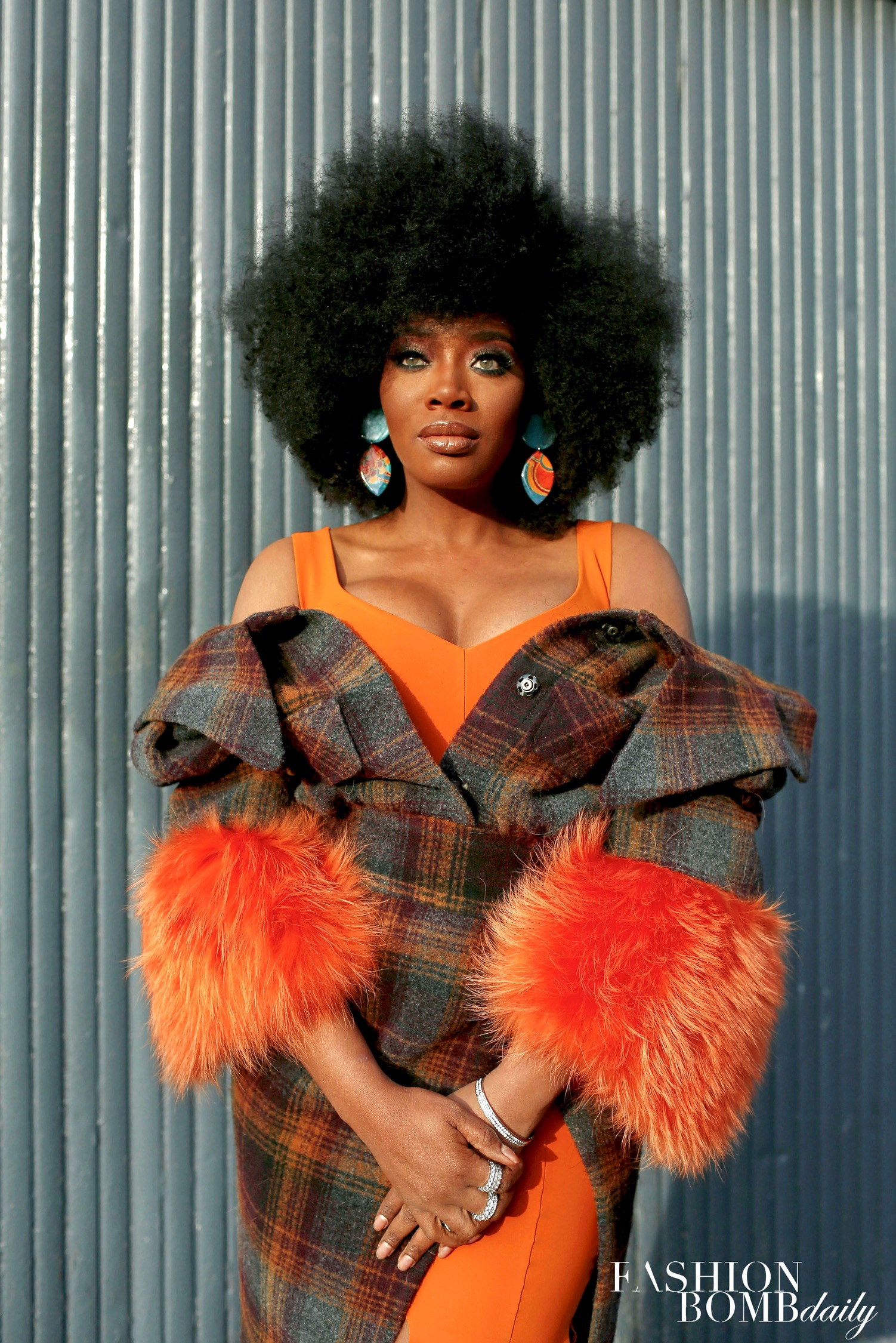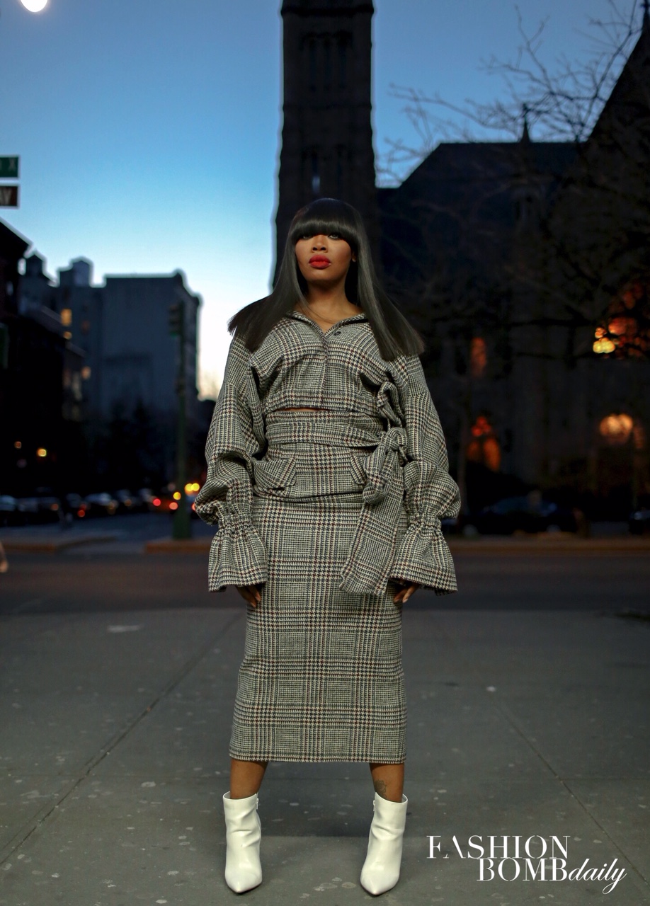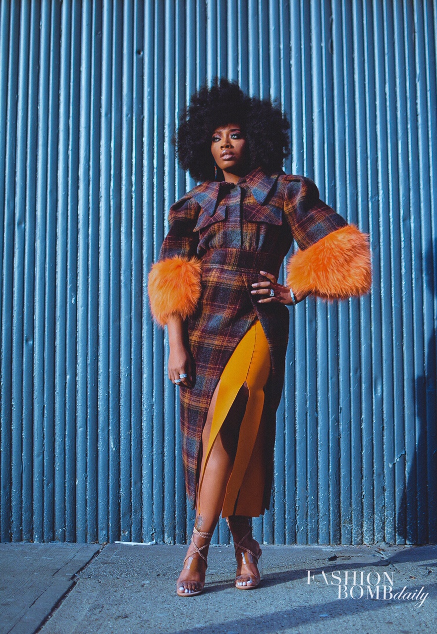 For our shoot, we aimed to reflect the multifaceted nature of a modern day business woman, with a throwback, retro vibe. This was a bit of a departure for Yandy, who says she’s never considered herself a fashionista. She says, “This is a dream for me. When I worked with Missy, I was constantly running around or sleeping on tour buses. I was a sweatpant and t-shirt kind of girl. I never wore makeup. I used to wrap my hair at night and comb it down. Now, I do a little more with my hair, I do a little bit more with my face, and I wear sparkles! It has been a transition. Now I love fashion. I love following your page, I love looking at magazines seeing what the latest styles are. I’m so in love with how [clothes] can set my mood. They can tell you how I’m feeling and they can even change my mood. I can put on a different outfit and I can feel so sexy. I can put on a bossy outfit, and I’m walking down the street, like I’m a STRAIGHT BOSS, you better act like it. But I never knew this. When I was running around on tour or even in college, [I wore] sweats, t-shirts, jeans, and sneakers. I feel so liberated when I can put on an outfit and become [a Glamazon].”