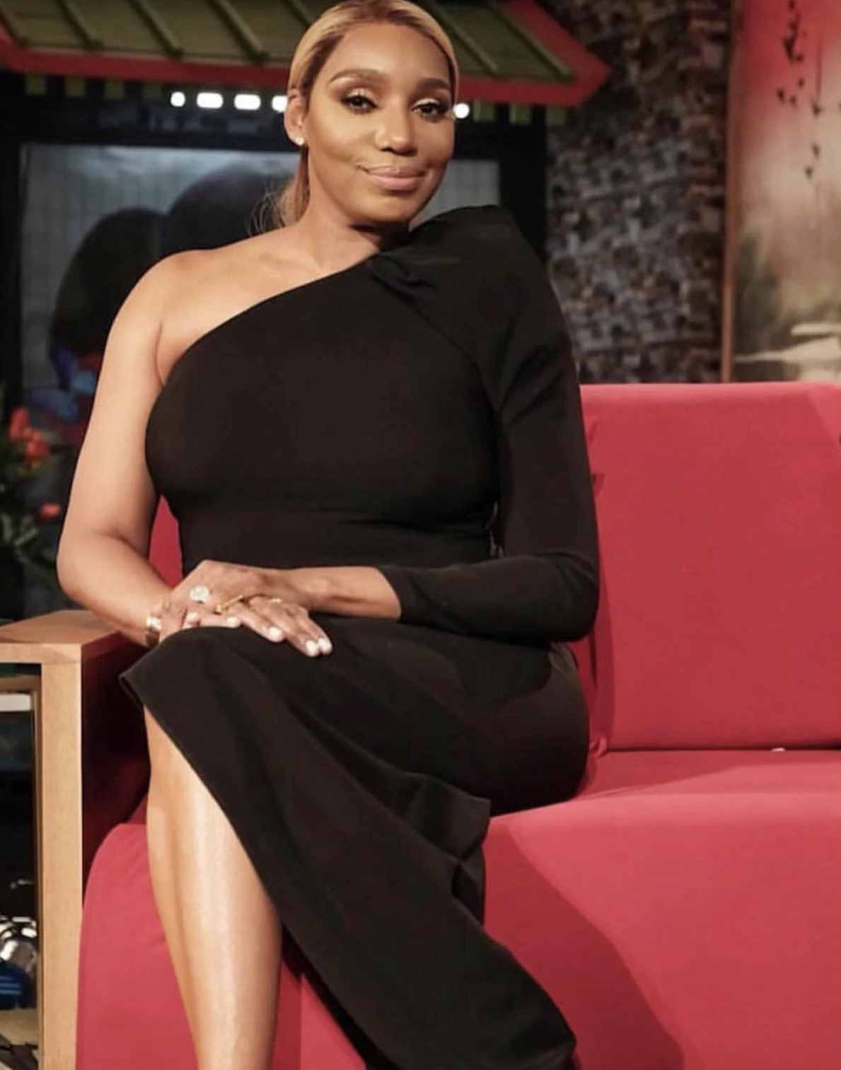 Nene Leakes skewed subtle in a one shoulder Lanvin black gown and Christian Cowan Sandals.