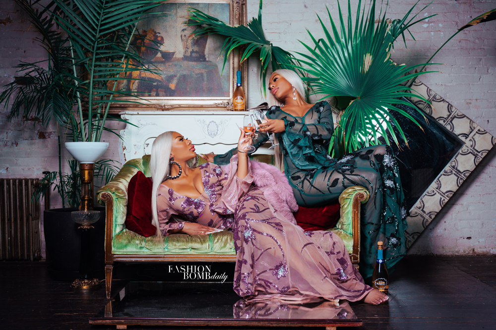 When the pair arrived–strikingly tall and curvaceous caramel hued glamazons, topped off by blonde hair and puckered lips–stylist Amiraa Vee showed them a few selections: furs by Bijoux Furs, scintillating dresses by Becca Apparel, a zebra two piece by Ashhsa Collection, Nroda Sunglasses, and heels by Sole Lavish. Shannon looked pleased while Shannade seemed skeptical, nixing some pieces with the cut of an eye. After sipping champagne from Tiffany flutes, they, without hesitation, peeled off their clothes and stood there, naked, ready to try pieces on. The room full of people was shocked at first, but almost couldn’t help but glance at their rotund backsides and perky breasts. Their bodies were works of art.