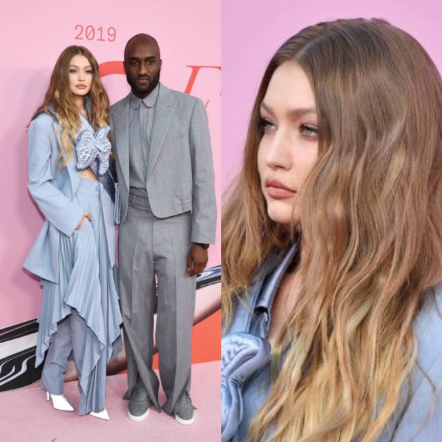 Gigi Hadid wore Louis Vuitton alongside designer Virgil Abloh to the 2019 CFDA Awards.