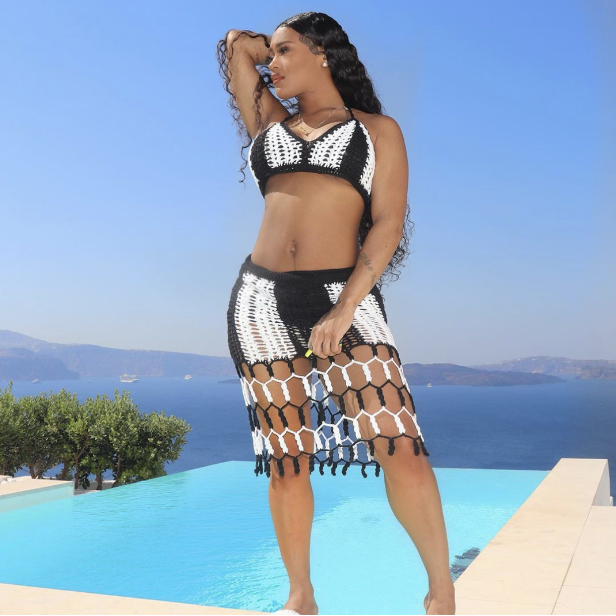 Lira Mercer slayed her pregnancy with the birth of her beautiful baby girl and now, she is showing us her post-pregnancy body in a Fashion Nova set! While living it up in Greece, Lira Galore was flaunting her snapback body in the Fashion Nova “Crochet To Look A Skirt Set”.