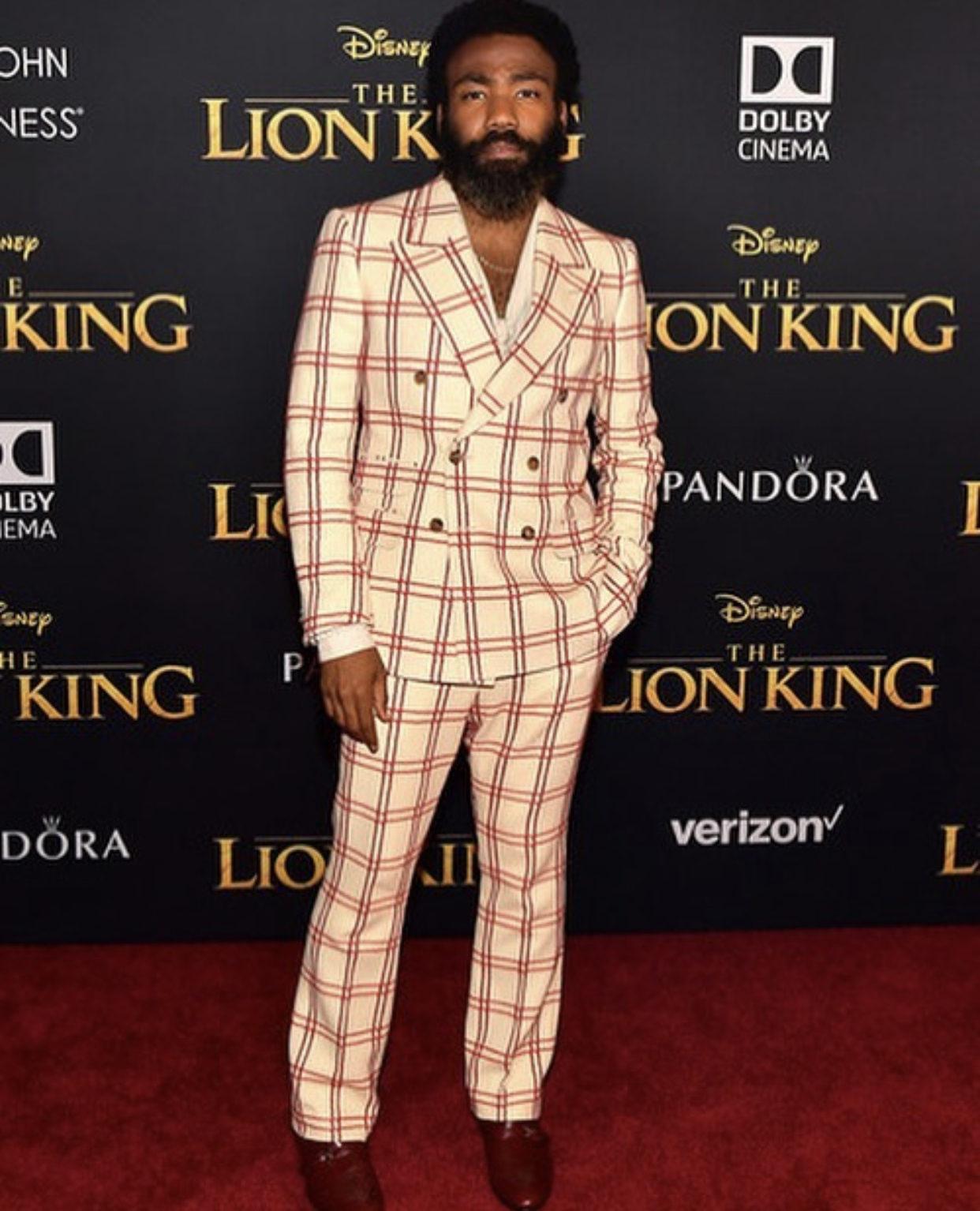 Donald Glover wore a Gucci suit to the premiere, styled by Illaria Urbinati.