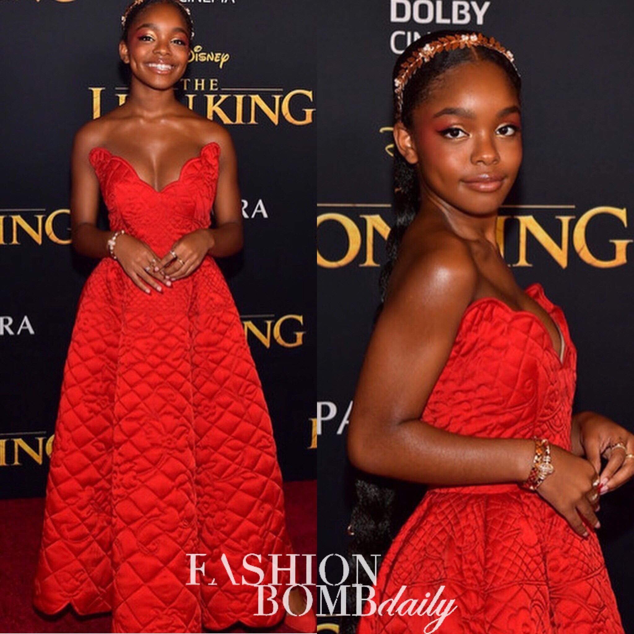 Marsai Martin was spotted in an Oscar de la Renta FW19 RTW dress at the premiere, styled by Jason Rembert.