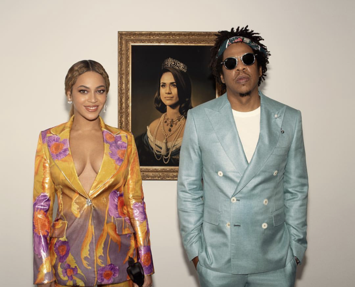 Beyoncé was giving us some golden hour vibes in a Cong Tri custom gown. The gown consisted of elegant Mediterranean goddess drape detailing in a popping gold, making the Queen literally look like royalty. Speaking of royalty, Beyoncé even shared a hug and a few words with the Duchess of Sussex Meghan Markle. Beyoncé and Jay-Z paid homage the Duchess in a video celebrating Black History Month and thanking the Brits for their Best International Group Award with Meghan Markle behind them resembling Mona Lisa.