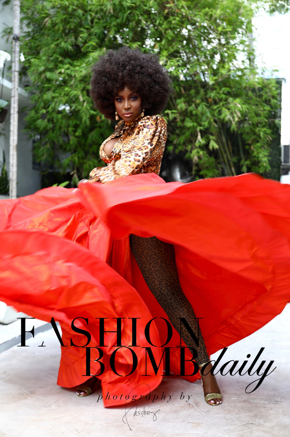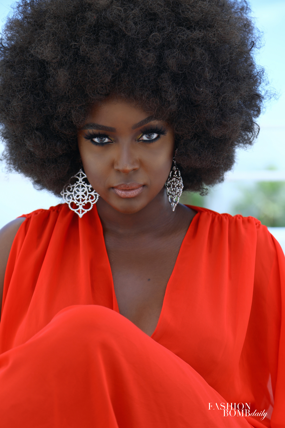 Though her stylist, Valentino, was running a bit tardy, Amara remained open to what we had plucked for her from beautylifefunShop.com. Without hesitation, she slipped on a ravishing red bejeweled Kaftan by Kaftans by Ela, which she accessorized with her own earrings, rings, and glittery Christian Louboutin pumps.
