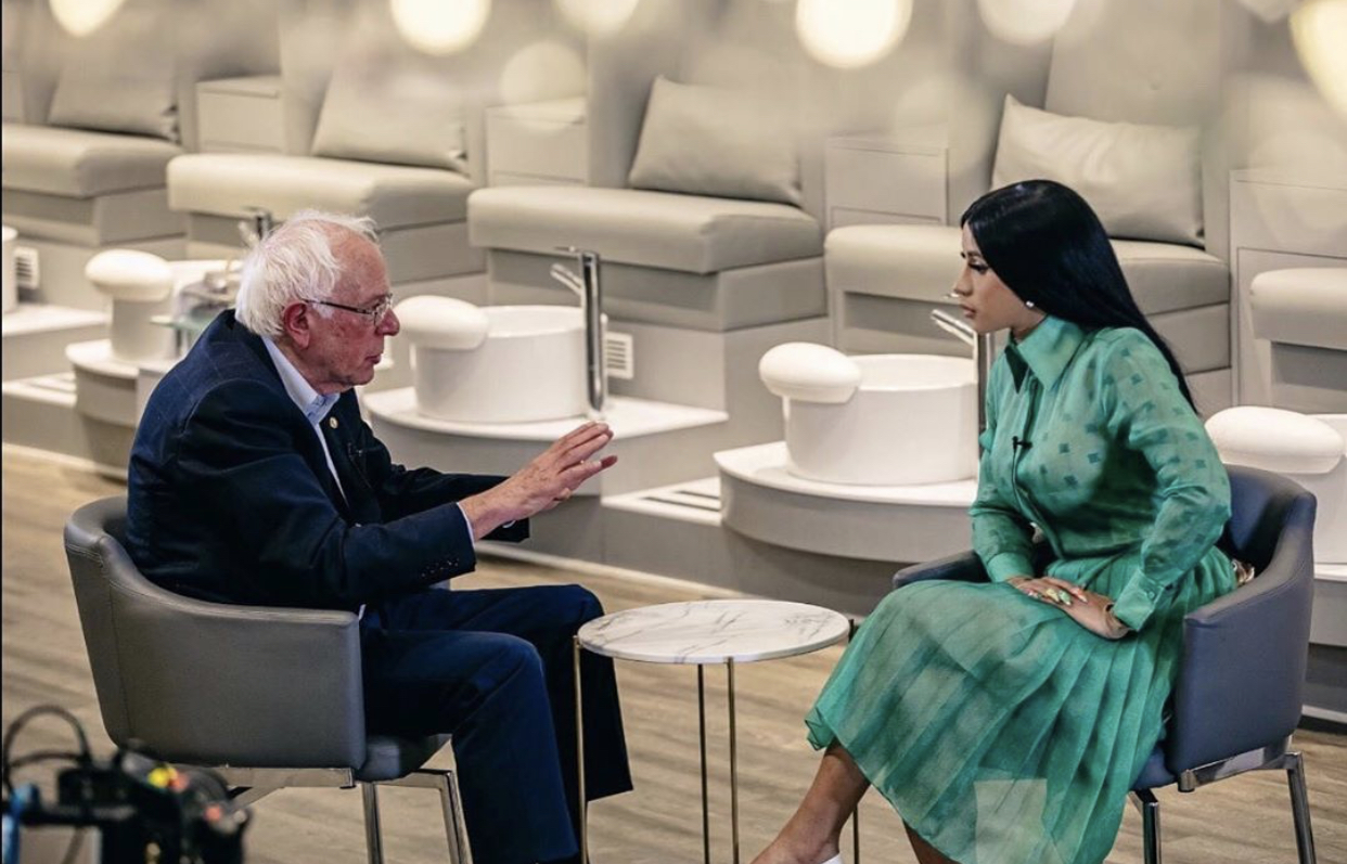 Recently, Cardi B took to Instagram to ask her followers if they had questions for a democratic candidate and what would they be. She gathered the most important and popular questions and went to meet with Bernie Sanders to discuss his plans to help the working class and change the country overall. And, she did while looking ever so classy in an aqua green Fendi look.