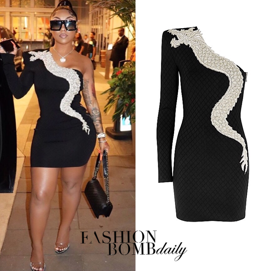 Most times a lovely reader with a keen eye, like @zzstaytuned spots a bomb look with an inquiry on where to snag such a find, and BeautyLifeFun of course has the answers to give! Bombshell Ariana Fletcher, also notably known as Ari (@therealkylesister), stepped out in what can be considered an LBD, but with a modish dragon accent that’s none of than a Balmain touch, styled by @Saksfifthrich. For a splurge of $4,050 paired with Alexander Wang stilettos and a Chanel bag, this Balmain Dragon Mini Dress just screams opulence with a classic edge. We have to get into Ari’s simple choice of accessories that gives a clean color palette of black and silver that does enough without having to do too much. I’d say this is definitely a hot look! Would you splurge, Bombers and Bombshells?