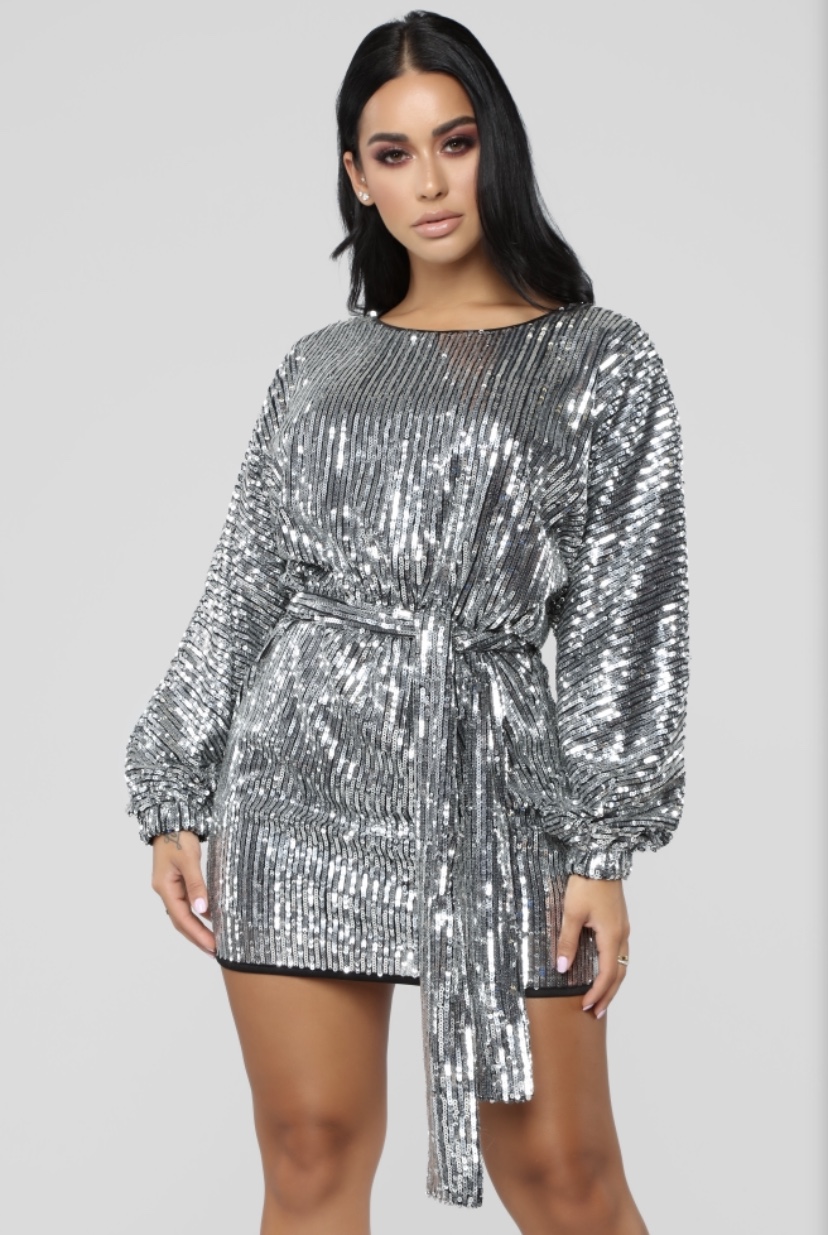 As cute as can be, Taina Williams shows how effortless it is for her to look so stylish while keeping simple all at once! There’s honestly nothing like a party outfit you can easily throw on, and wear to any occasion that’s fitting for such a flashy look. Even the hair pulled back and minimal jewelry made this look so good, because the sparkles from the dress does just enough! But if you want to liven things up, like our lovely models shown, you have that option of doing a number with your hair and accessories. — Available in Silver, Fashion Nova’s ‘Where the Party At?’ dress is sequin, oversized and 100% polyester. For only $80, snag yours here Bombshells!