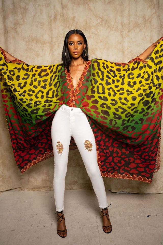 With Sai Sankoh’s ‘Nawara Goddess’ Kaftan, you’d be bright, bold and beautiful in a product most fitting for an End of the Summer engagement, or a sunny destination while the weather still suitable soak in. It’s hard not to rave over a the prints and colors that matches perfectly well with something simple and fresh feeling as white jeans.
