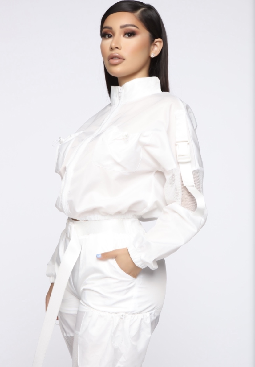 Angela Simmons knows what works for her body, and that’s what makes her style so effortless. While on her leisure, she opted for Fashion Nova’s ‘Serving Looks’ Lounge set, and such a name is so fitting. For a bright sunny day, you can’t go wrong with all white with some fresh kicks. Did we mention how trendy polyester is especially for athleisure wear? It comes as a two piece set (Jacket and Joggers), with mesh and buckets details. I think this look is a go! Snag yours here for $60, Bombshells.