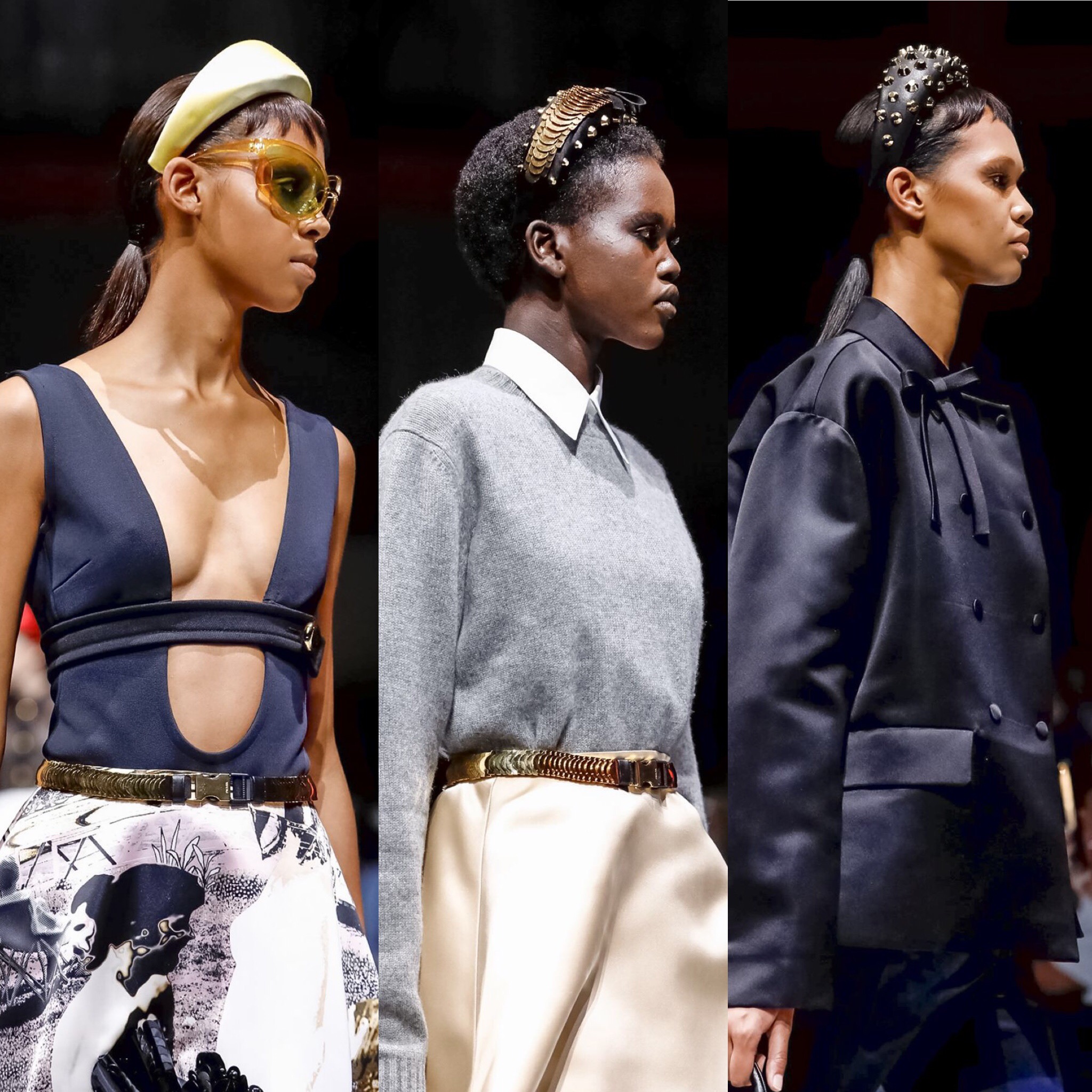 New trend alert! The padded, oversized headbands have been taking over celebrity style and street style at fashion weeks. The revamp of this chic accessory can be accredited to Prada and their SS19 RTW collection which was presented at Milan Fashion Week. Every single model from the show strutted down the runway with padded headbands upon their heads in varying Springtime colors with a few featuring crystallized embellishments.