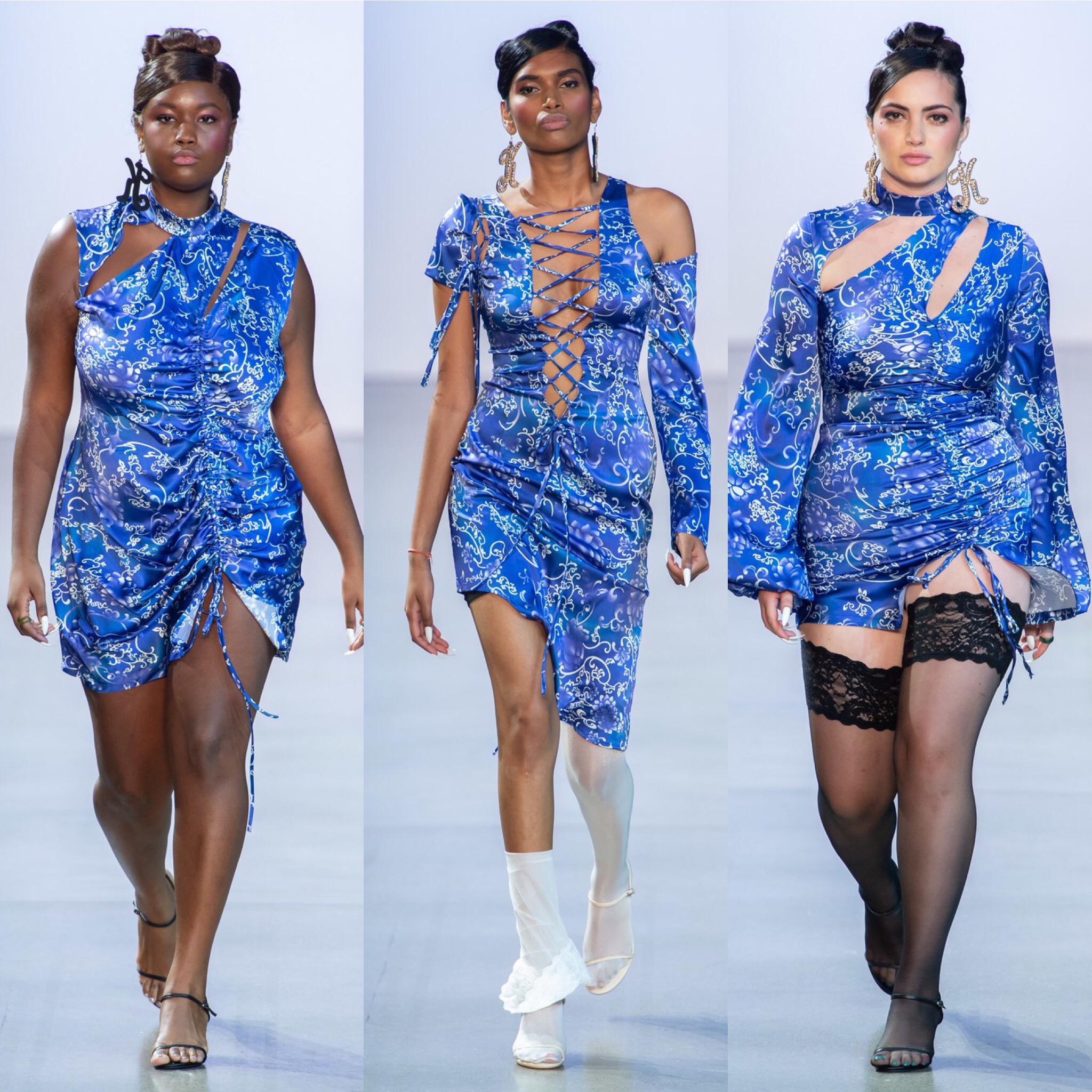 The alluring details are meant to show women that we should be embracing our femininity despite society’s efforts to denounce what is sexy and what is not. She also uses varying body types to challenge common body norms and promote body inclusivity to show that every woman can be sexy. The collection also plays with old-timey European elements of fashion with its incorporation of French lace thigh-high stockings and floral corsets.