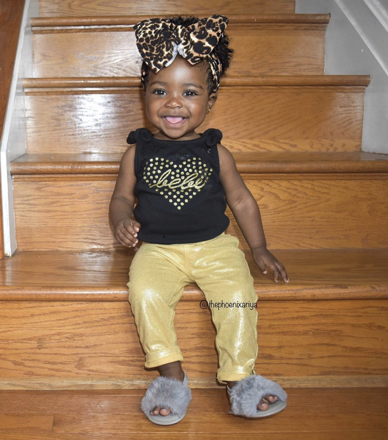 Her mom, @feleciamoniqueblog, states: “she enjoys shopping with mommy, wearing big bows, dancing, and spending time with her family.”