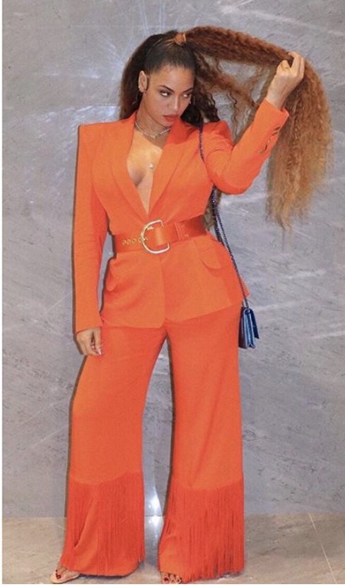 Beyonce has been blessing us with a blitz of photos as of late on Beyonce.com! Her latest look? A Sergio Hudson orange blazer and pants, recently worn by Queen Latifah to the MTV VMas: