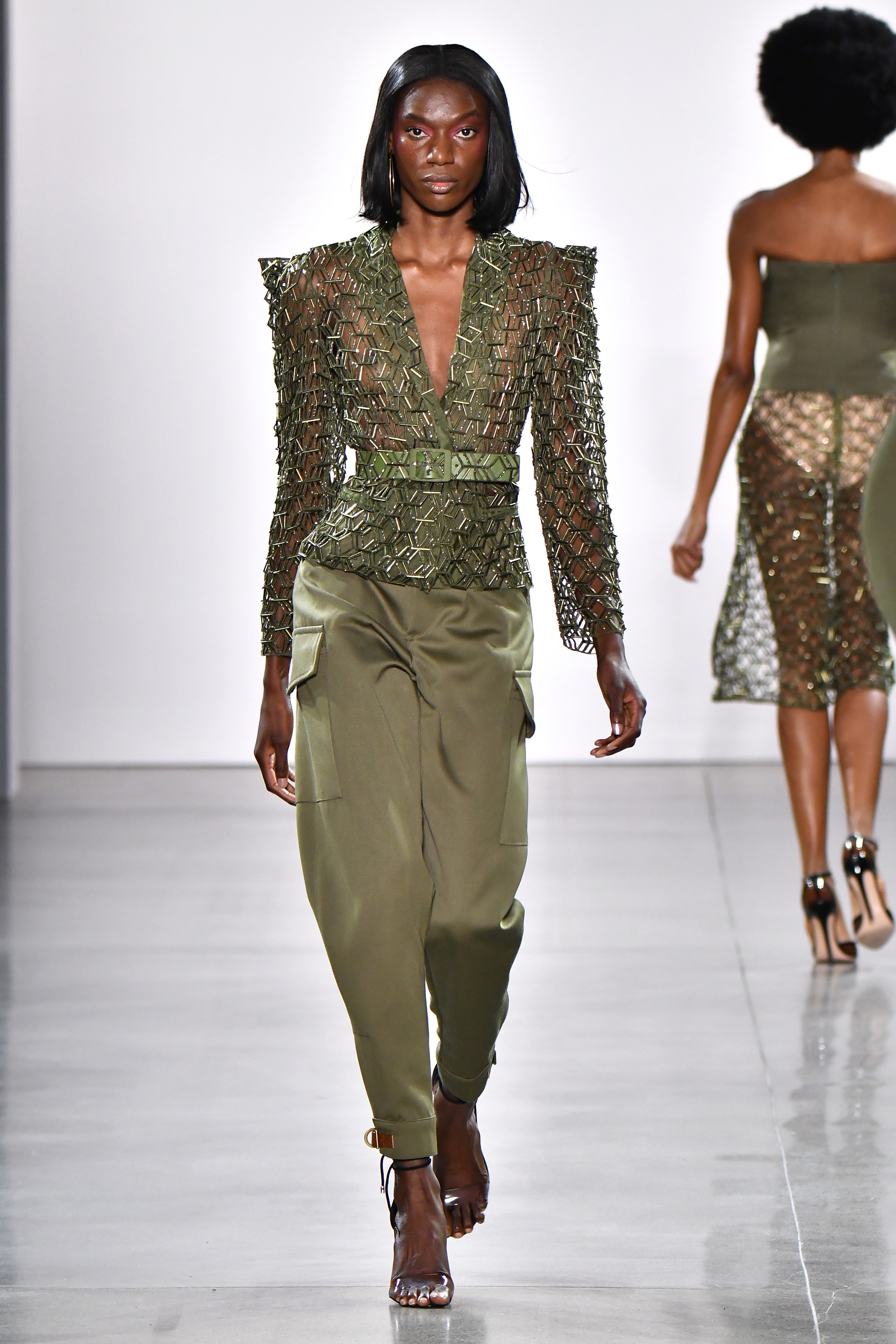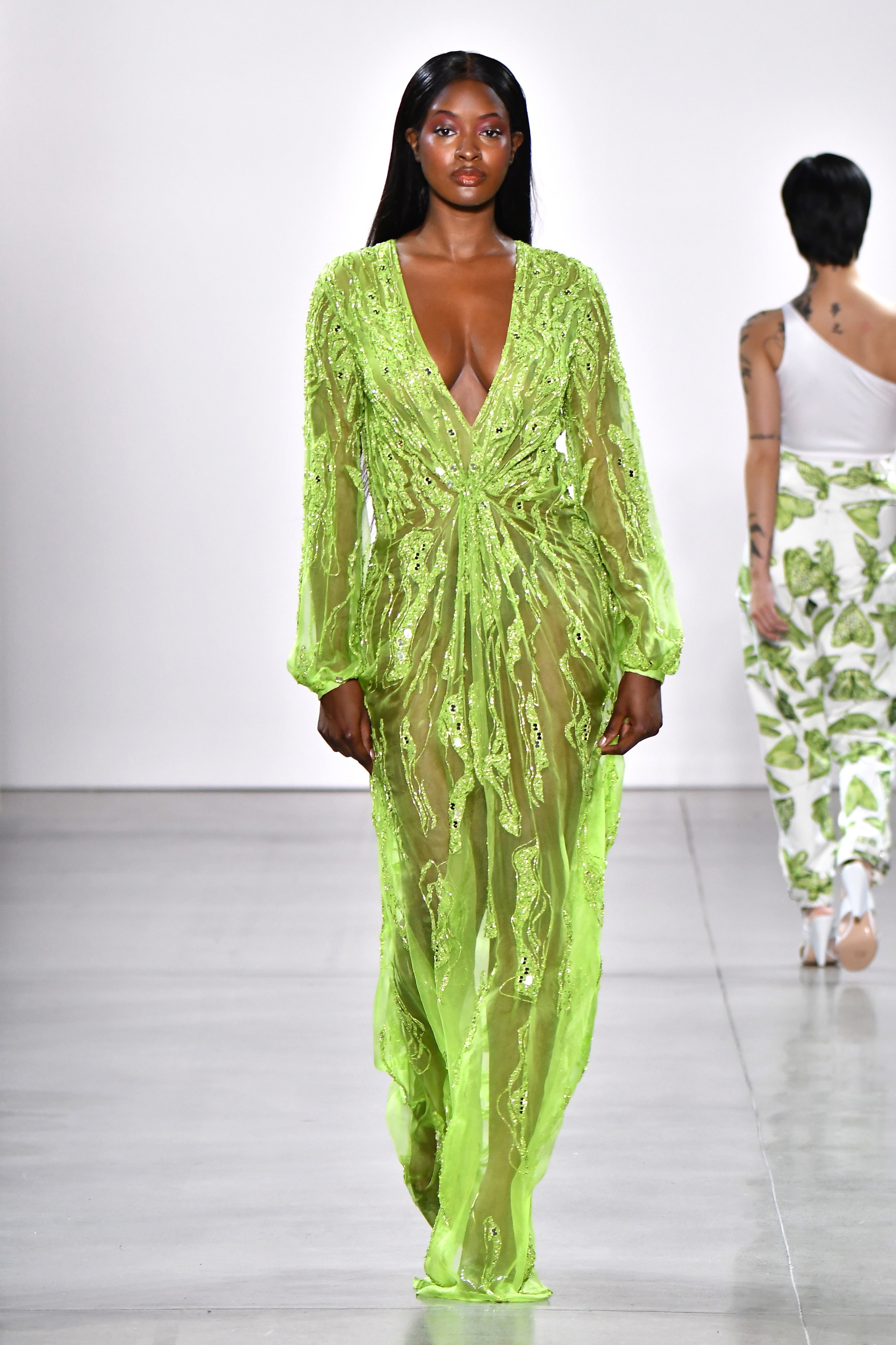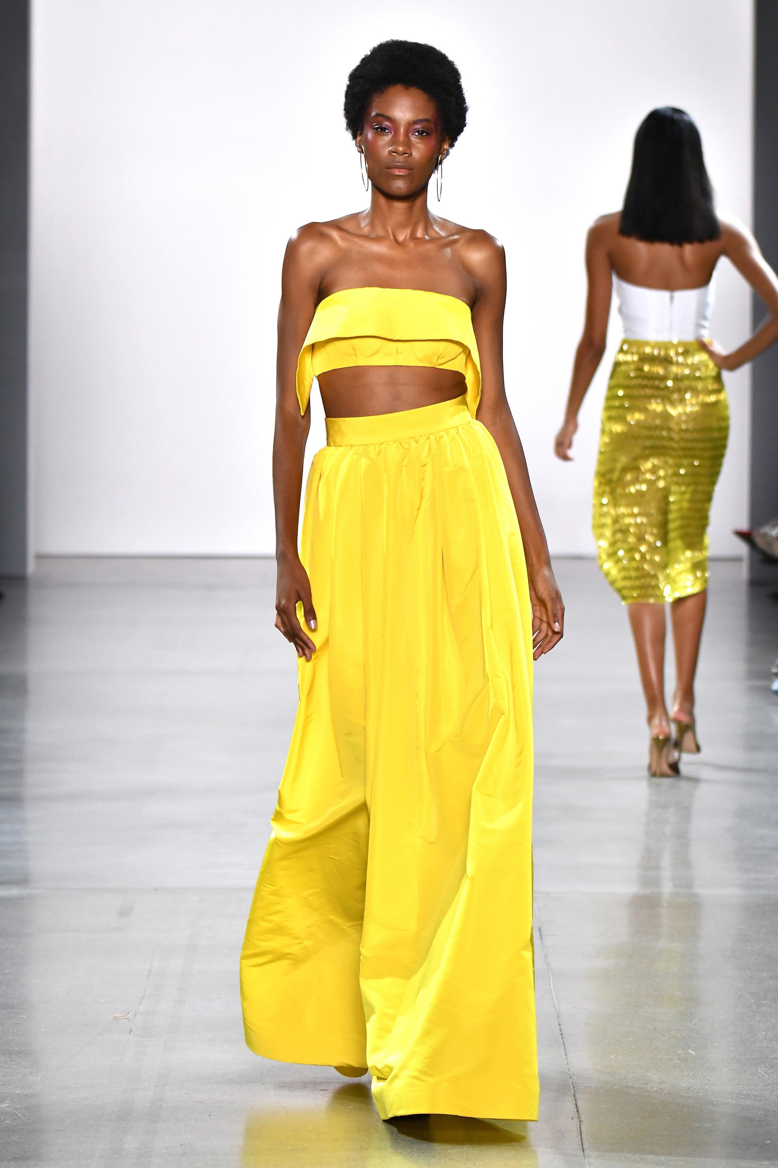 Known for dressing A-list talent like Issa Rae, Rita Ora, and many more, Rembert fittingly offered red carpet worthy gowns in a sea of colors that would pop on brown skin: yellow, greens, and reds reigned supreme, while metallics, and all black pieces played to those with more classic predilections.