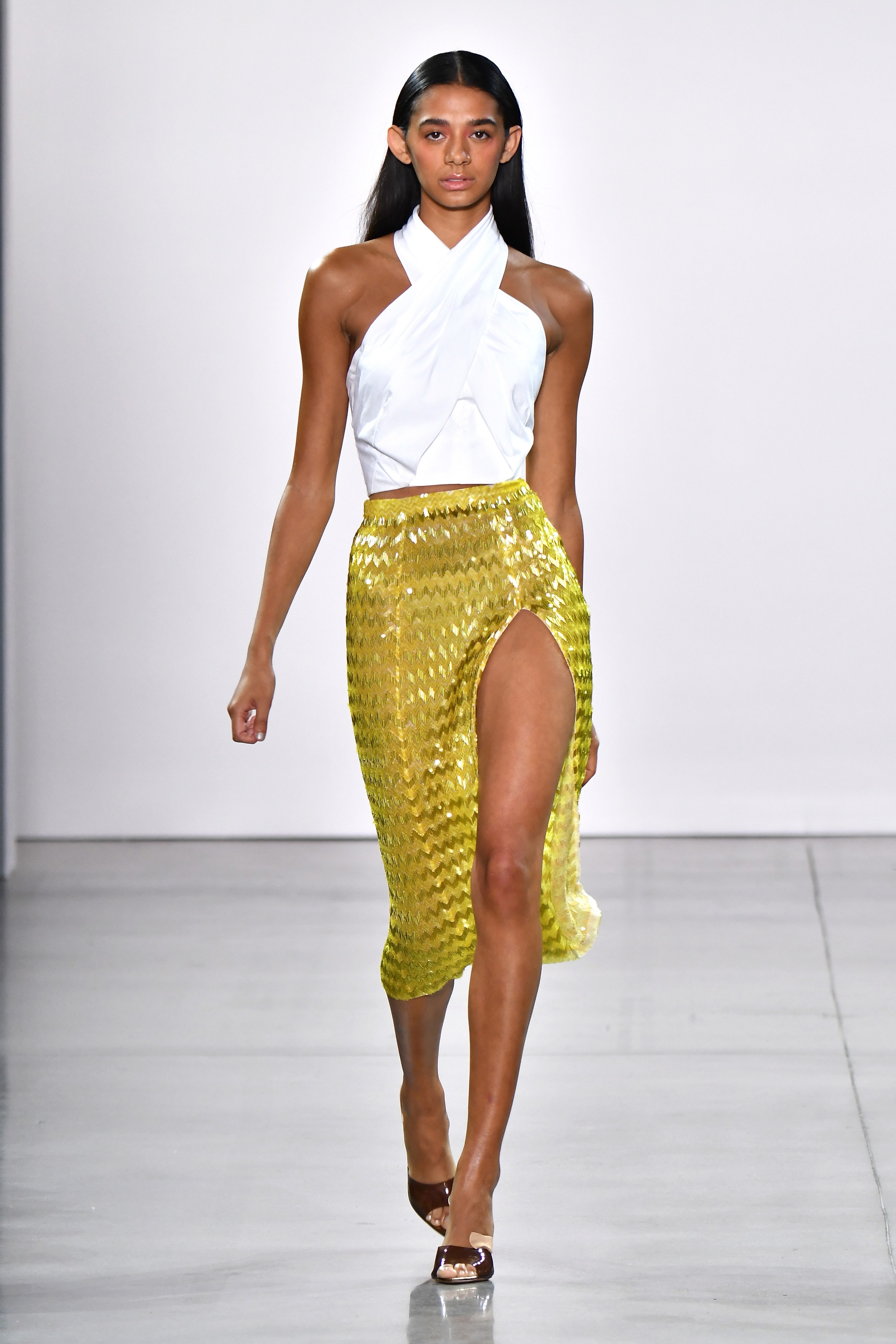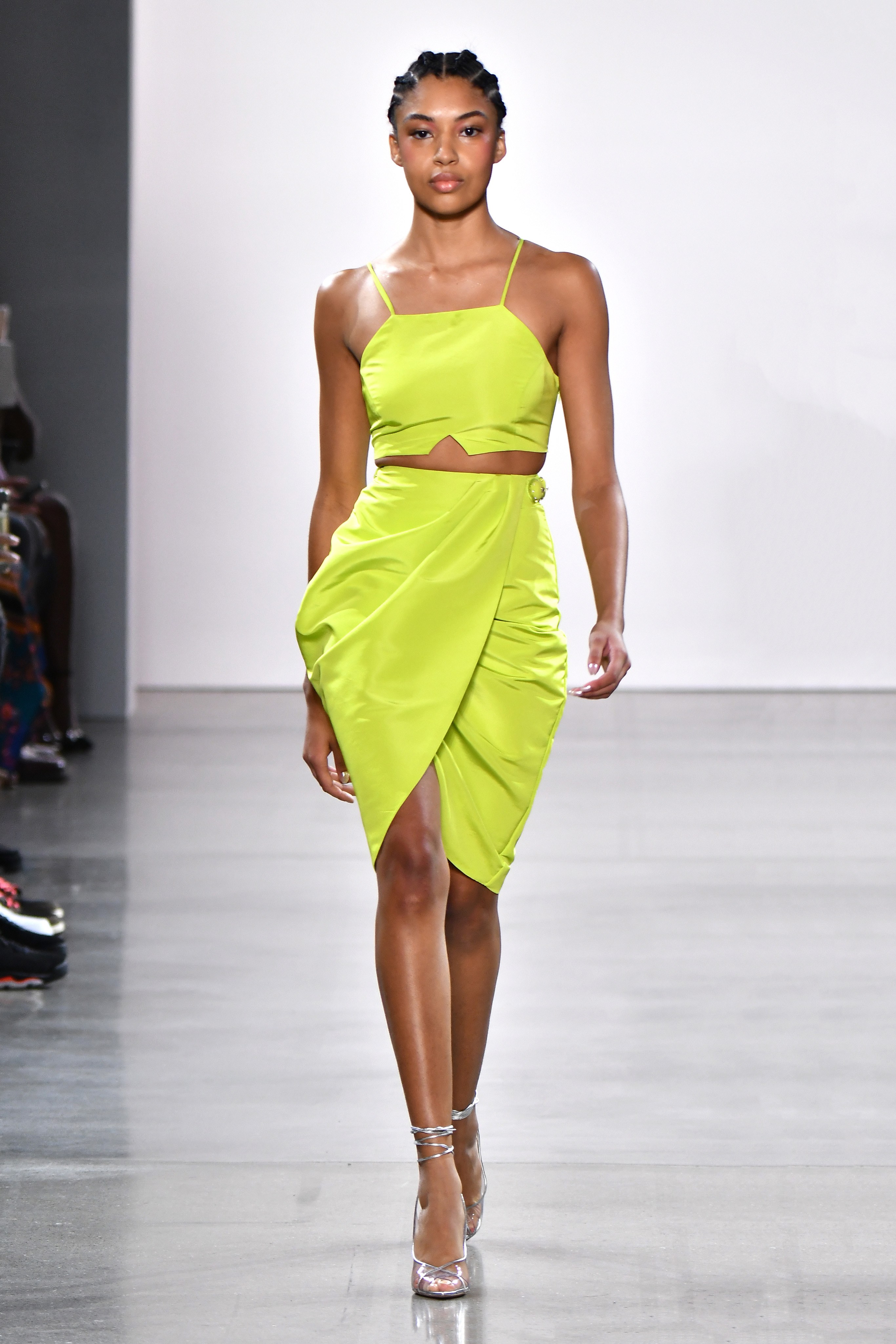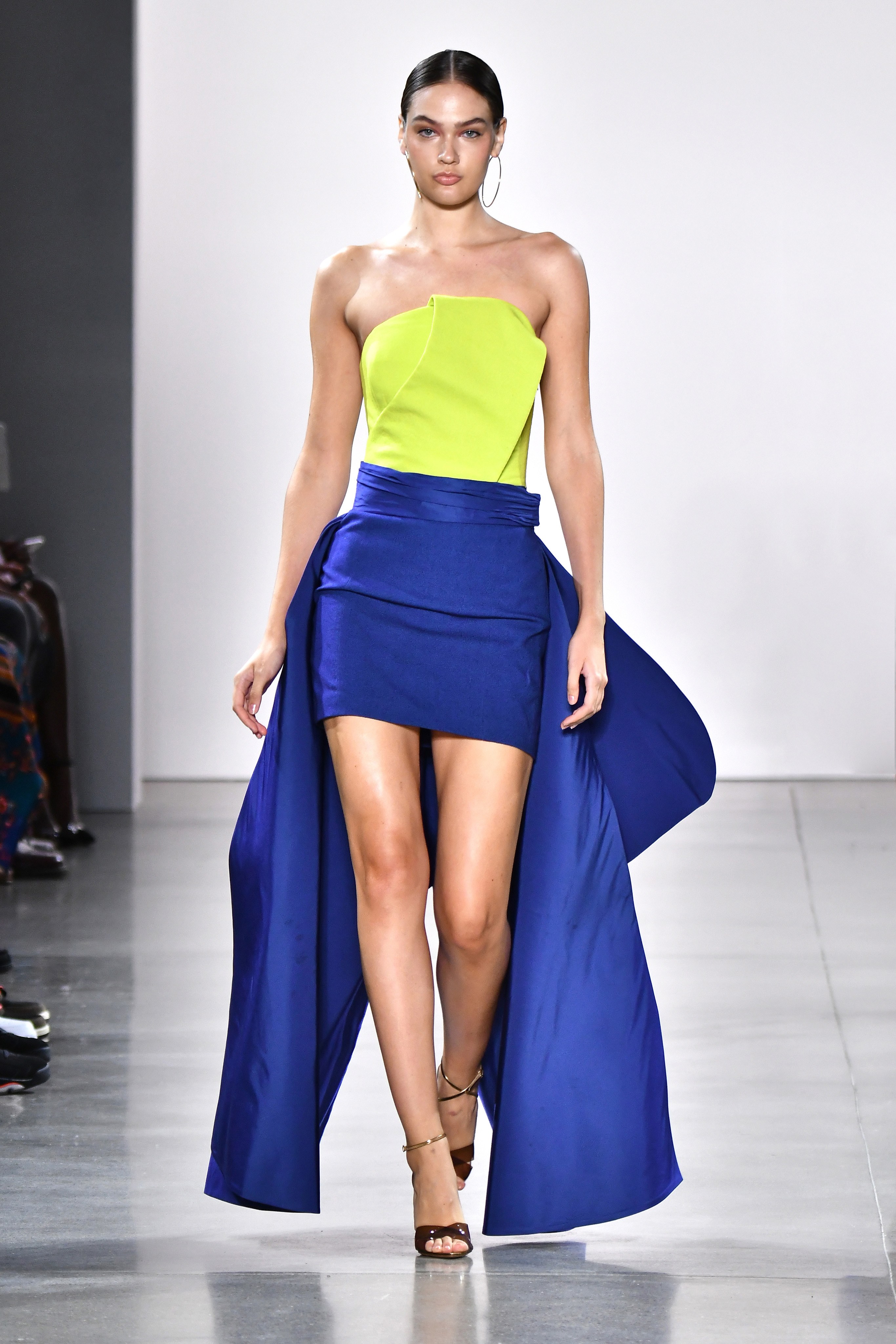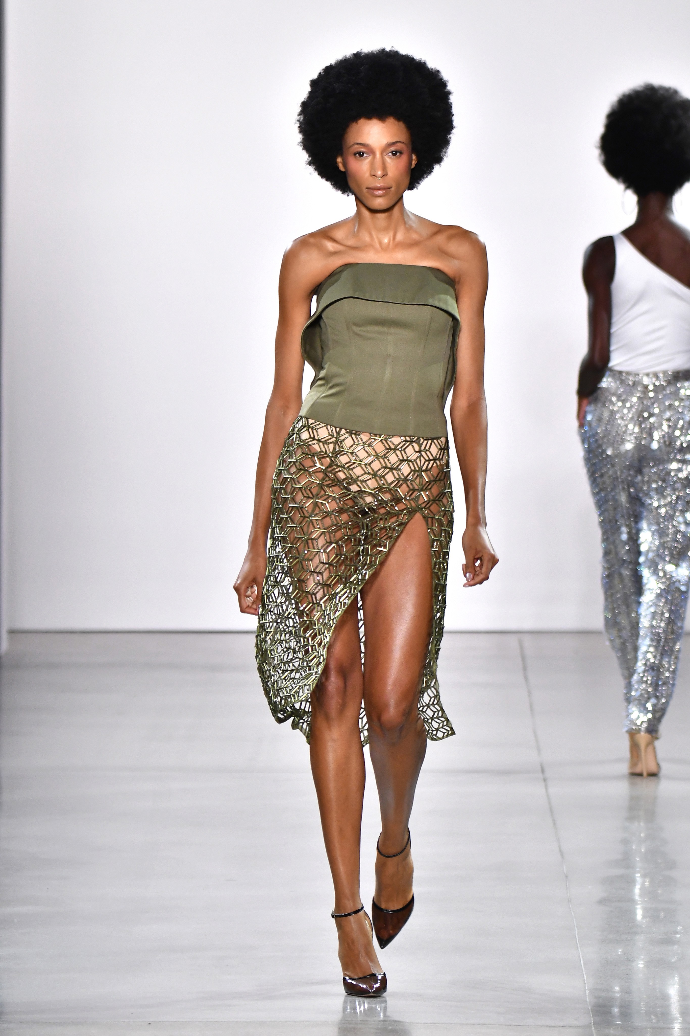 Known for dressing A-list talent like Issa Rae, Rita Ora, and many more, Rembert fittingly offered red carpet worthy gowns in a sea of colors that would pop on brown skin: yellow, greens, and reds reigned supreme, while metallics, and all black pieces played to those with more classic predilections.