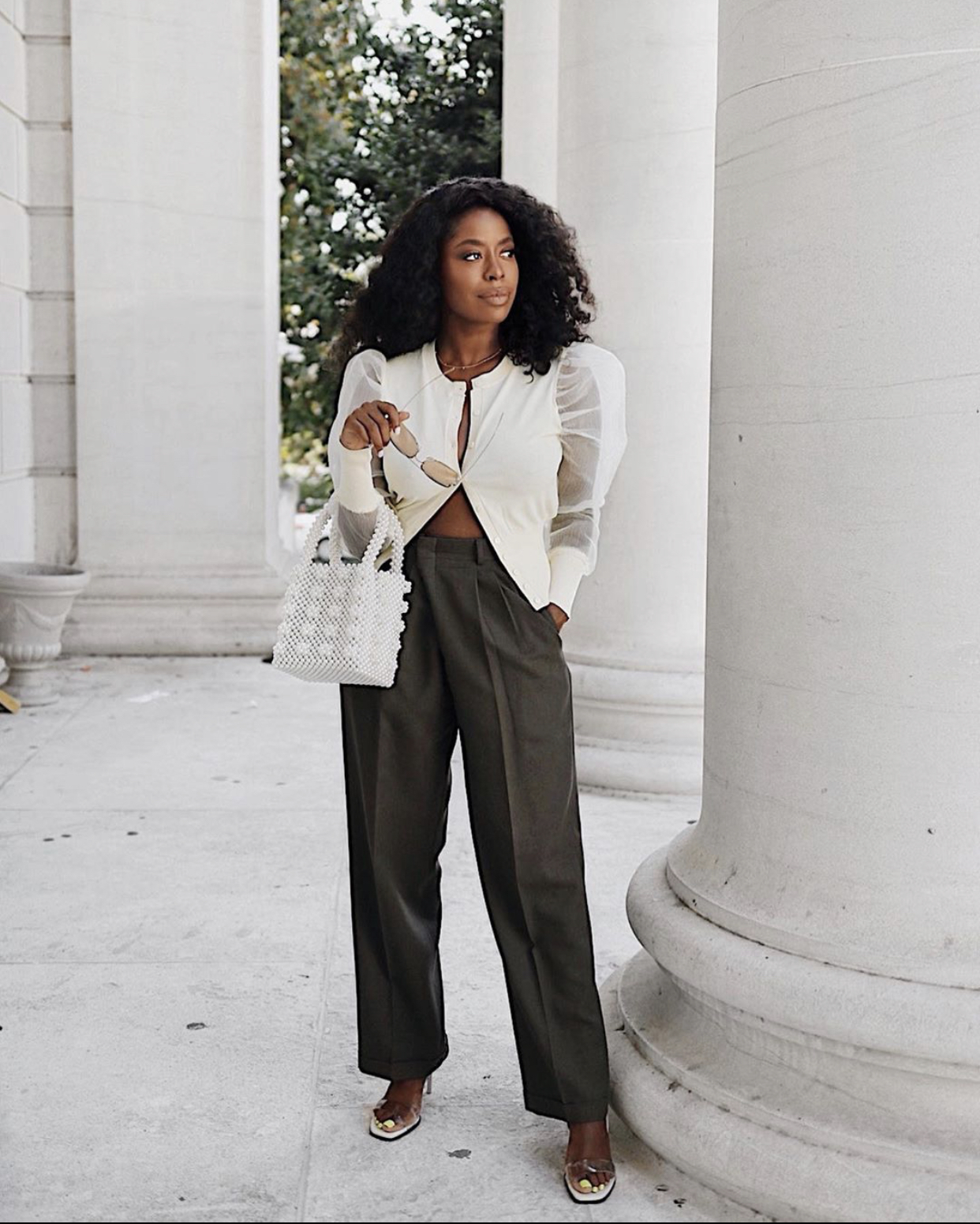 She further states, “I focus on closet staples and having great foundational pieces, then I add in fun details and accessories to elevate my looks!“