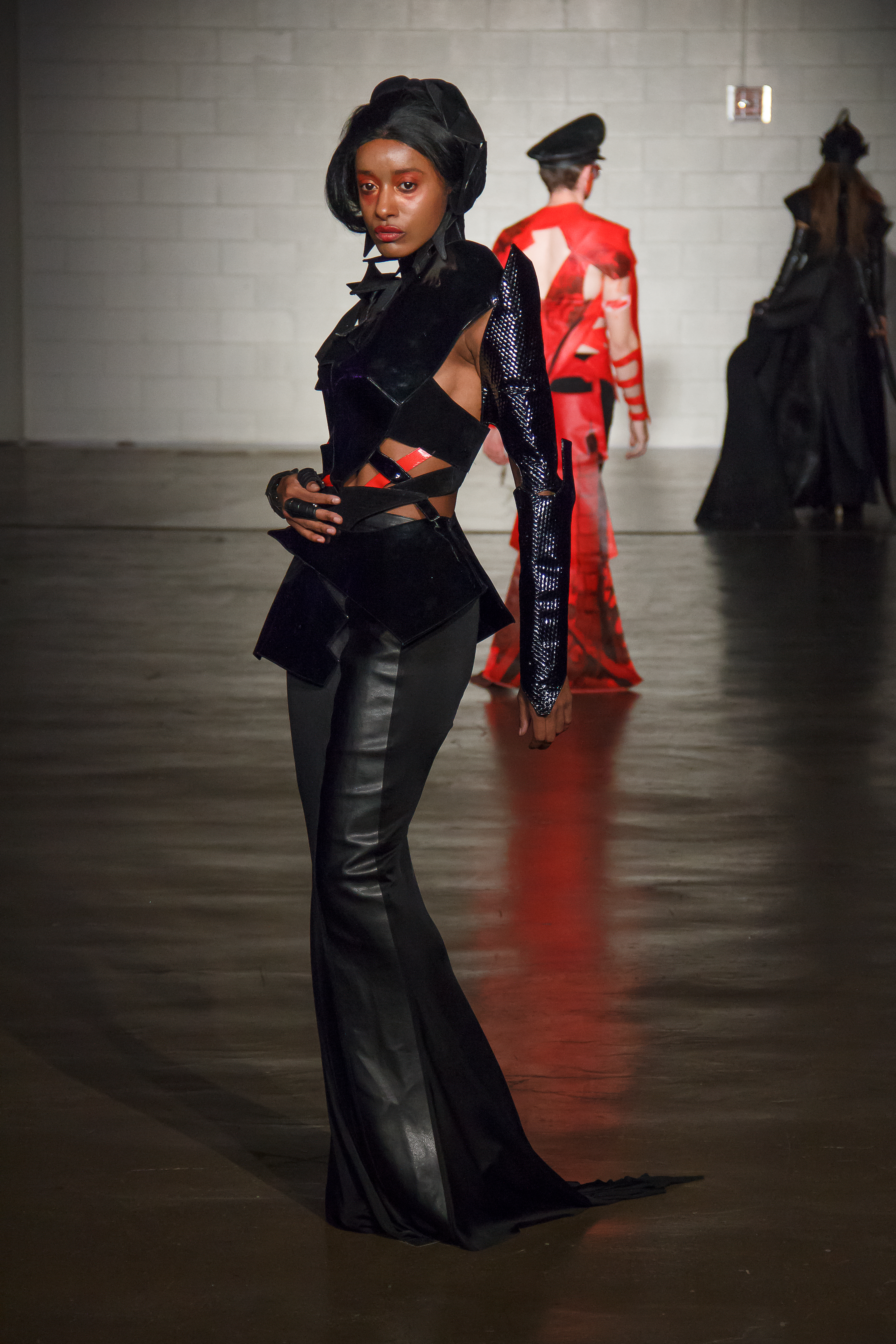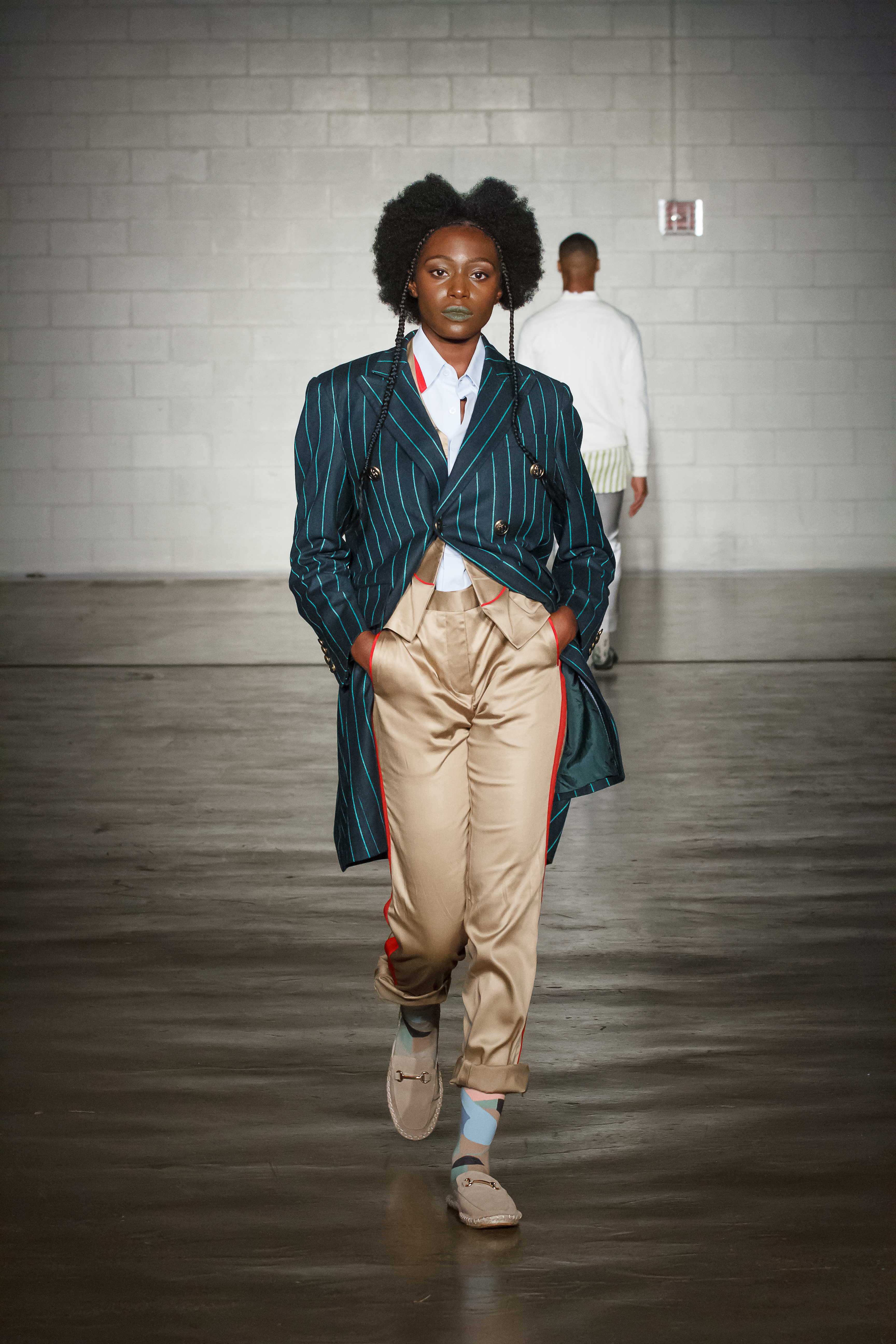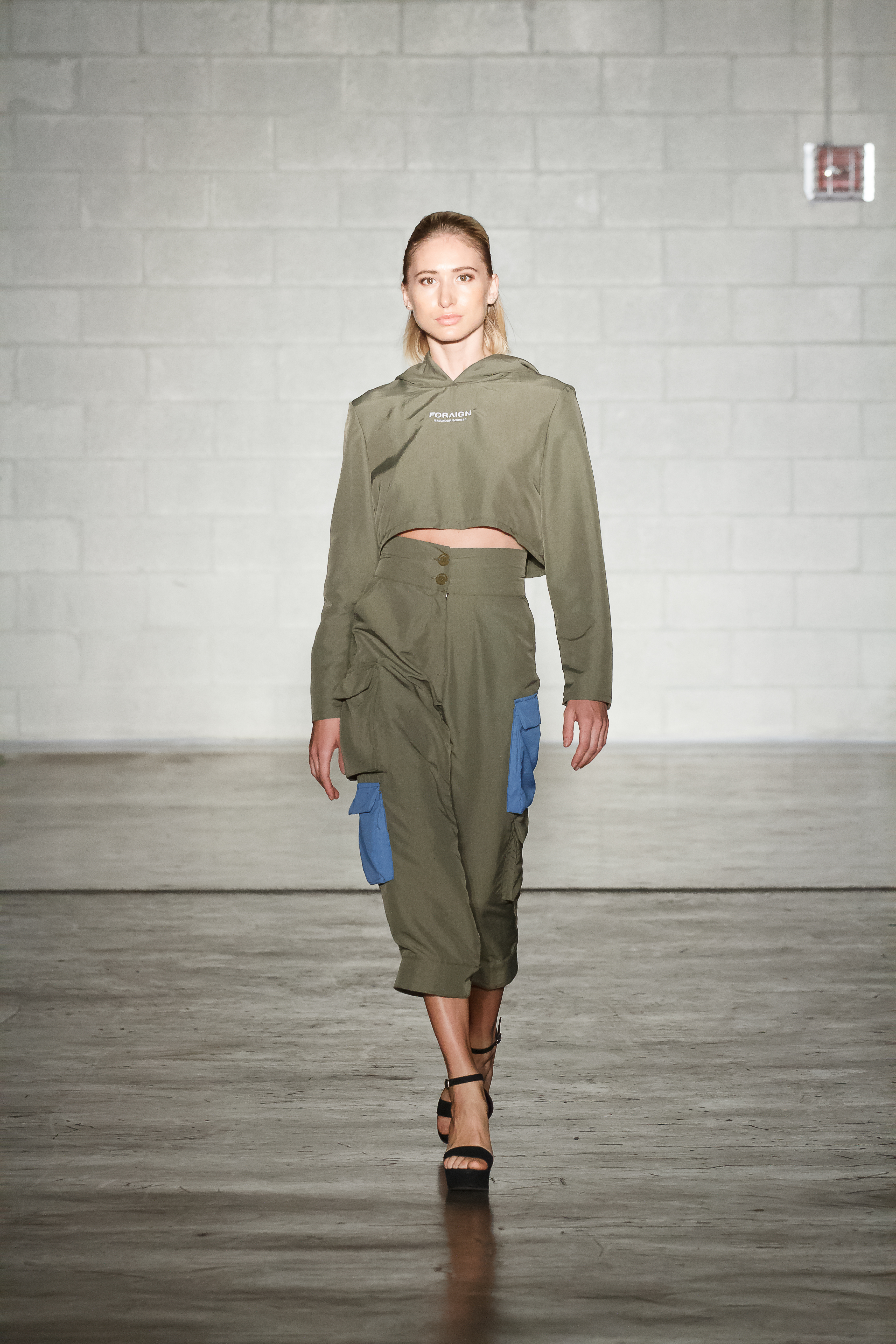 Foraign opened the show with a streetwear styled collection titled “Salvador,” inspired by the designer’s trip to Salvador, Brazil. Large, bag-sized cargo pockets dominated the collection, which boasts a mix of utilitarian and trendy pieces for both men and women. “The use of large cargo pockets was the idea of us [people of color] having to always be on the move and not being able to carry a lot of bags with us,” designer Kortney Williams said after the show.