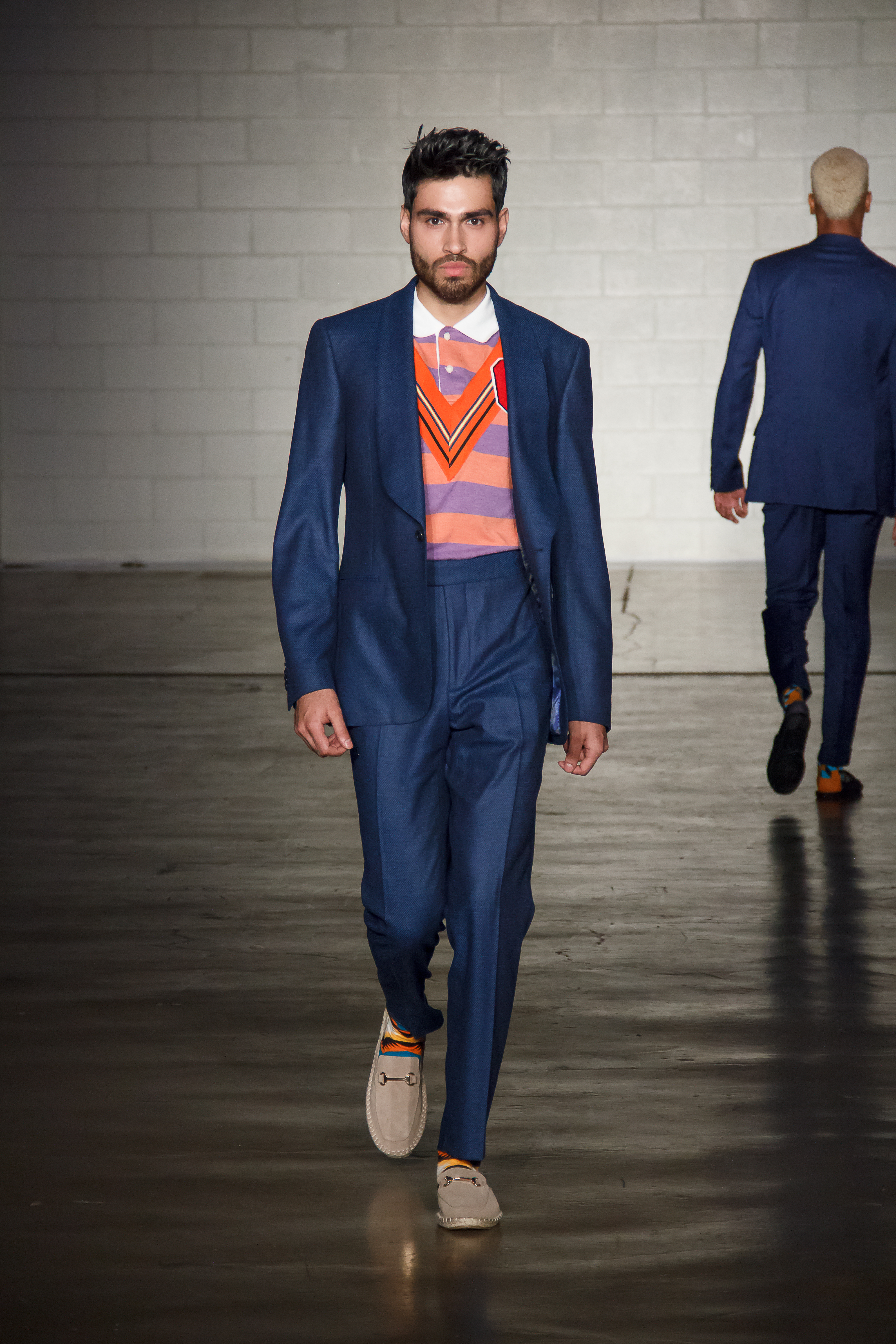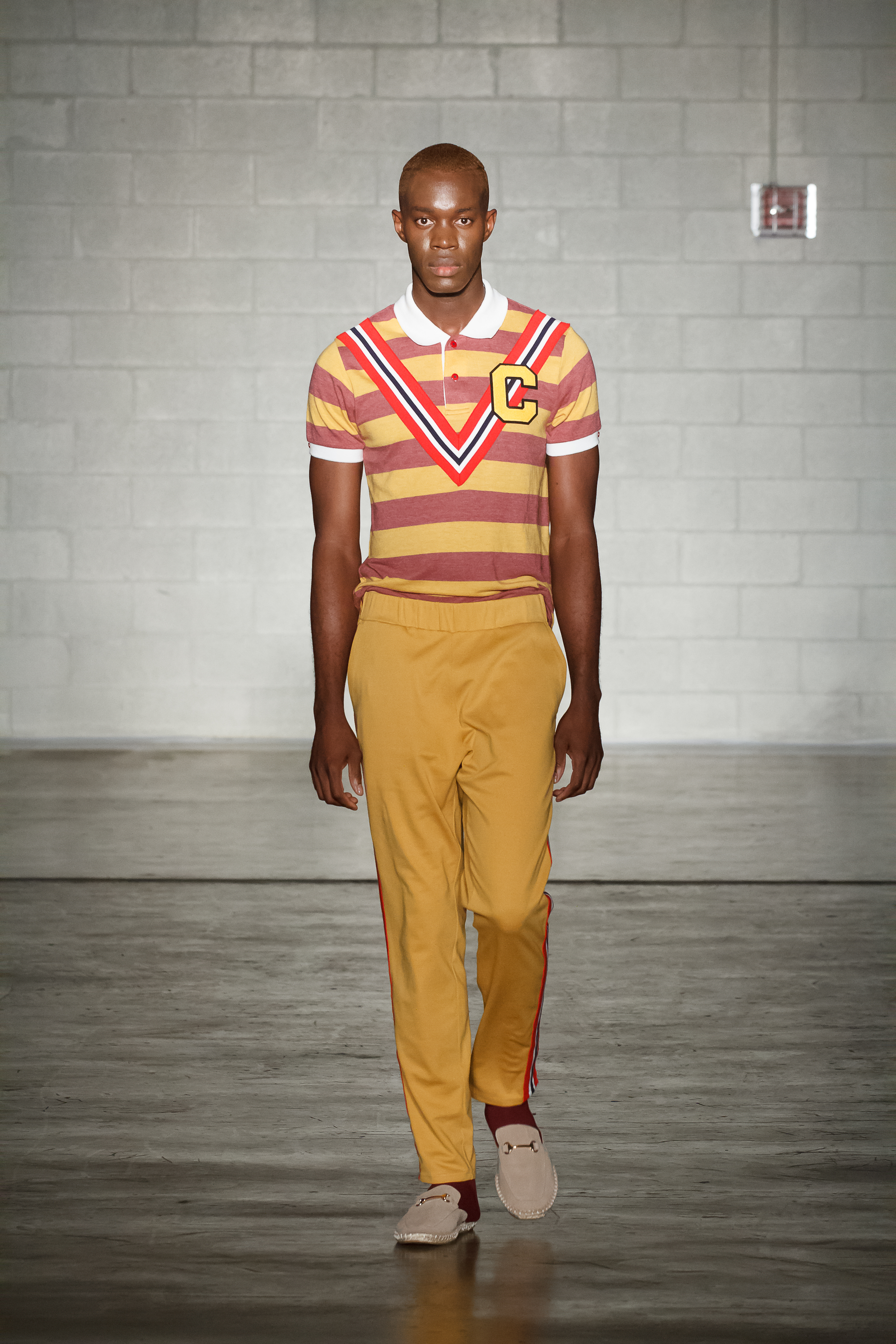 Another standout brand, Dreu Beckemberg, brought his best high low runway show, merging his high-end custom suits with his casual ready-to-wear pieces. The lineup was reminiscent of Ralph Lauren, but with cricket replacing polo or rugby. The Jamaican American designer grew up playing cricket in the islands and took the opportunity – with a wide variation of stripes on tees, bomber jackets, and matching blazer/trouser sets – to flex the sportswear arm of the brand during this showcase. The ease of the Beckemberg Cricket Club sportswear was only bested by the crisp, sharp and impeccably cut Made for You Beckemberg suits that demonstrated the craftsmanship the menswear brand has come to be known for.