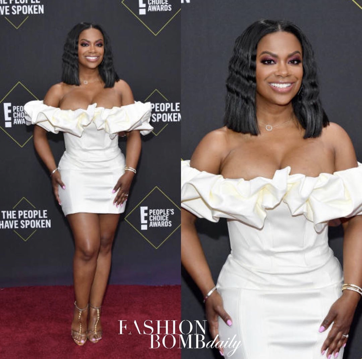 Kandi Burruss wore House of CB and Christian Louboutin shoes to the 2019 People’s Choice Awards, styled by Apuje Kalu.