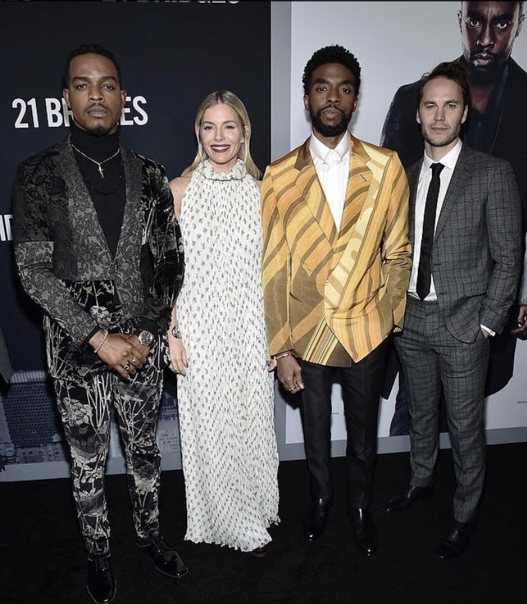 21 Bridges is a highly anticipated and intense drama/action movie starring the great actor Chadwick Boseman. “He stars as NYPD Detective Andre Davis on the hunt for two cop-killers in the action thriller of 21 Bridges.” The leading man hit the red carpet premiere of the film recently in New York with his lovely significant other Taylor Simone Ledward.