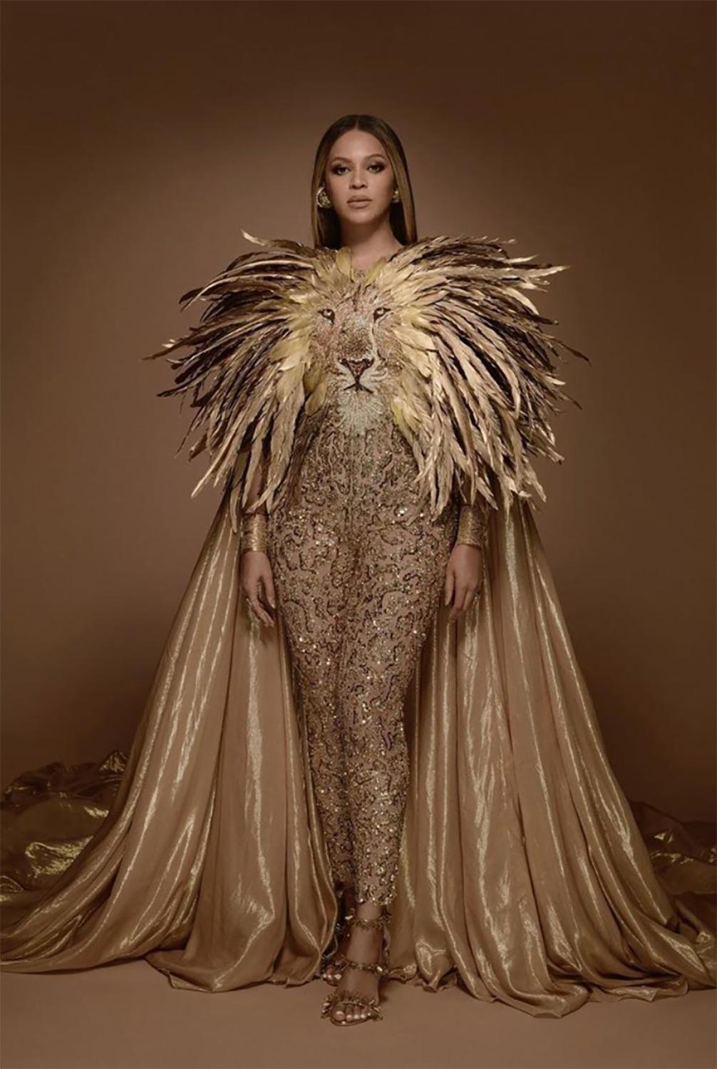 Bey in a caped, lion-inspired bodysuit by designer Georges Hobeika at her mom Tina Lawson’s Wearable Art Gala. It’s called fashion! Look it up!