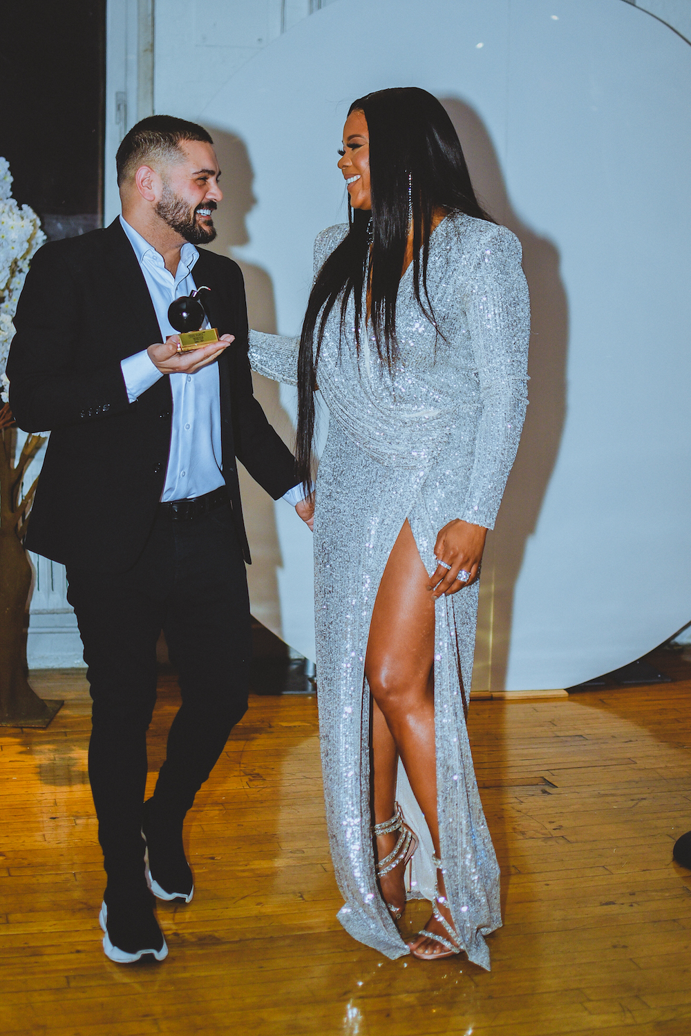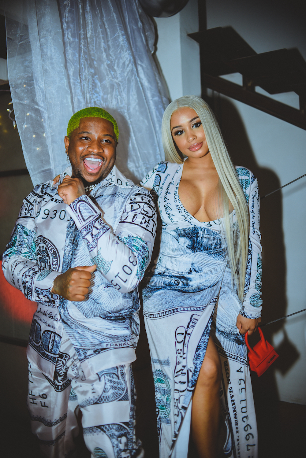 The Hairstylist of the Year Award, sponsored by True Indian Hair and Curls, went to Arrogant Tae. Tae attended the festivities with Dreamdoll wearing dollar printed designs by Duckie Confetti.