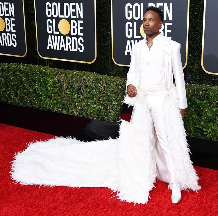 Billy Porter is a Fashion Feast we crave for each red carpet event that he makes an appearance. His look for The Golden Globes was a divine dish of ultimate style. The daring divo wore a pure white custom Alex Vinash Suit with feathered train, along with custom Jimmy Choo white & crystal embellished boots. He is definitely a regular on our viewers top ten list. What do you think of Billy’s style choice?