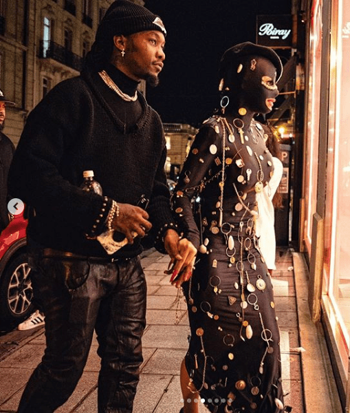 That wasn’t the only time Cardi B masked up while in Paris. She also was spotted wearing a mask by Ecosys with her custom cat suit.