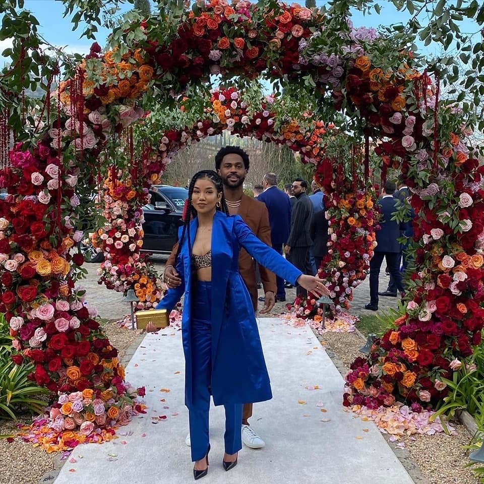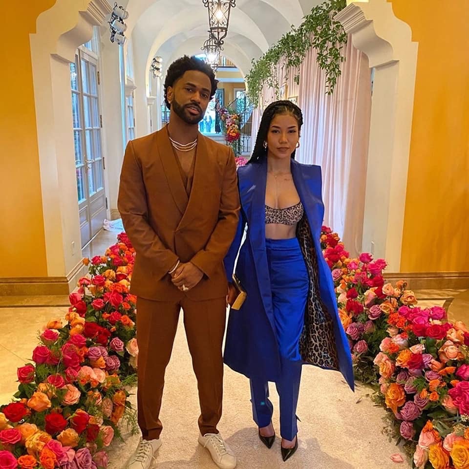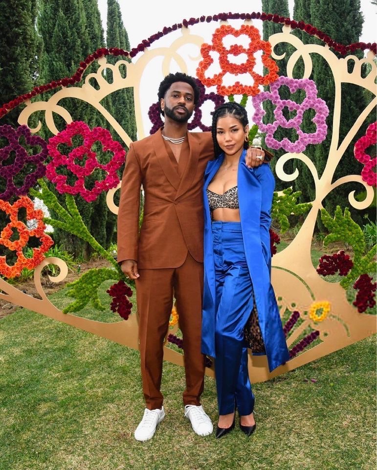 Jhene Aiko looked lovely in a “Nipsey blue” Dolce & Gabbana pant with matching over coat. The inside of the jacket was lined with leopard print and so was Jhene’s bra top. She was along side Big Sean of course, who wore a brown Zegna suit.