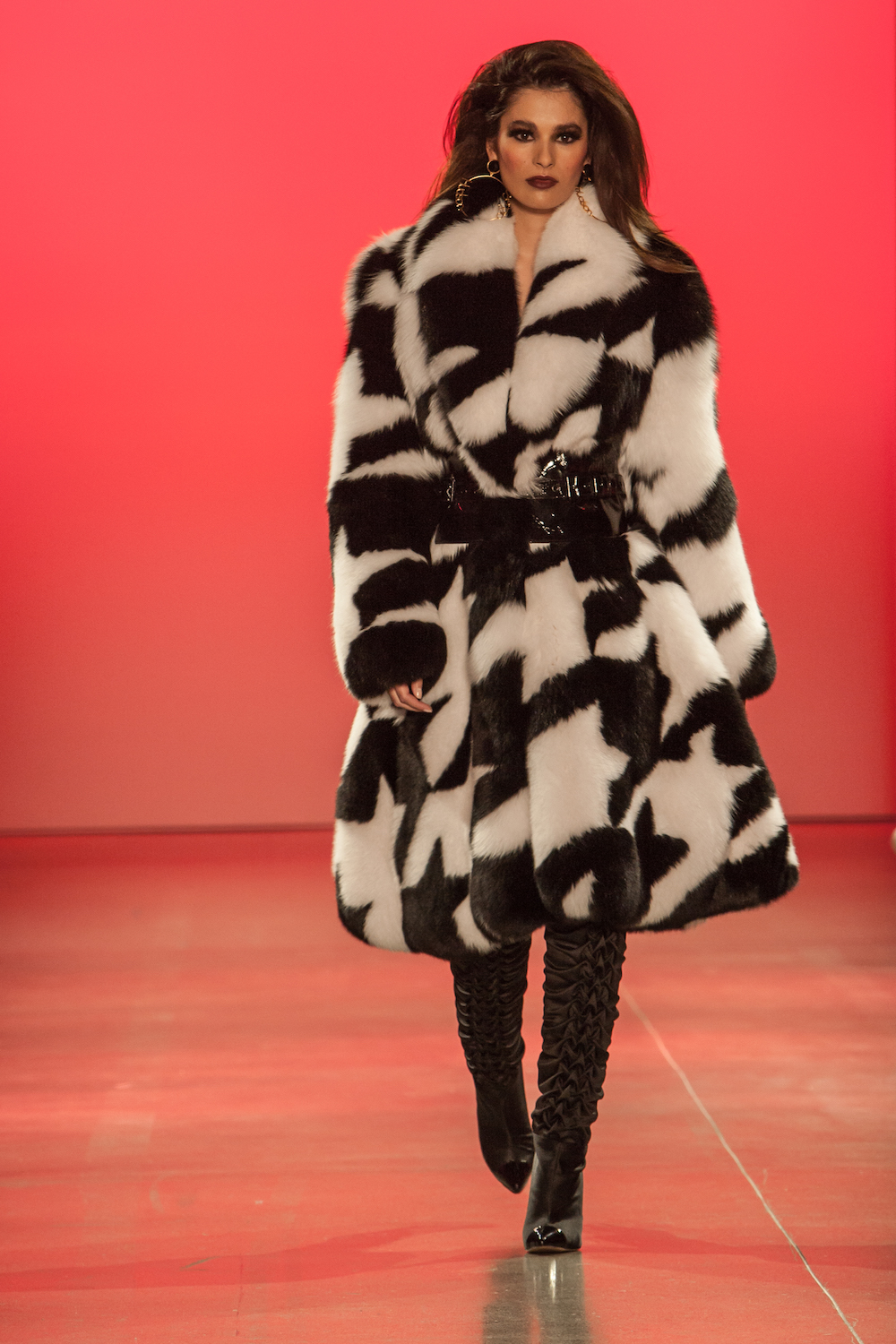 Citing Pebbles as his inspiration, models bounced down the runway in Jessica Rich Collection heels, teased hair, and dangling gold jewelry, with pencil skirts and waists, snatched to oblivion.