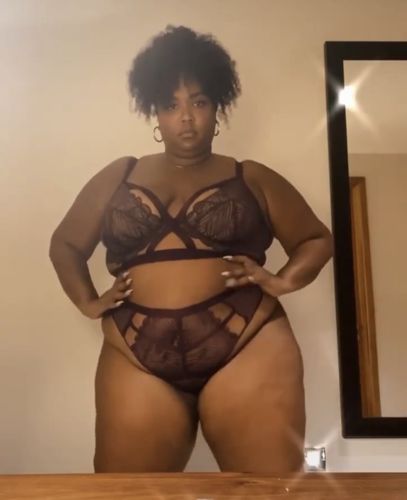 Lizzo did a saucy dance on Valentine’s Day in a $35 Alina Lace Bra and a $16 lace thong from ASOS: