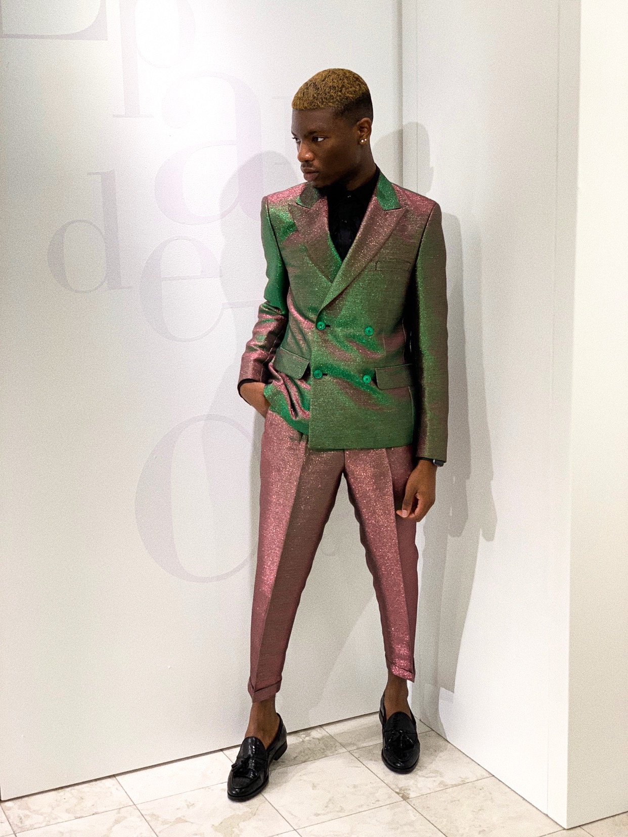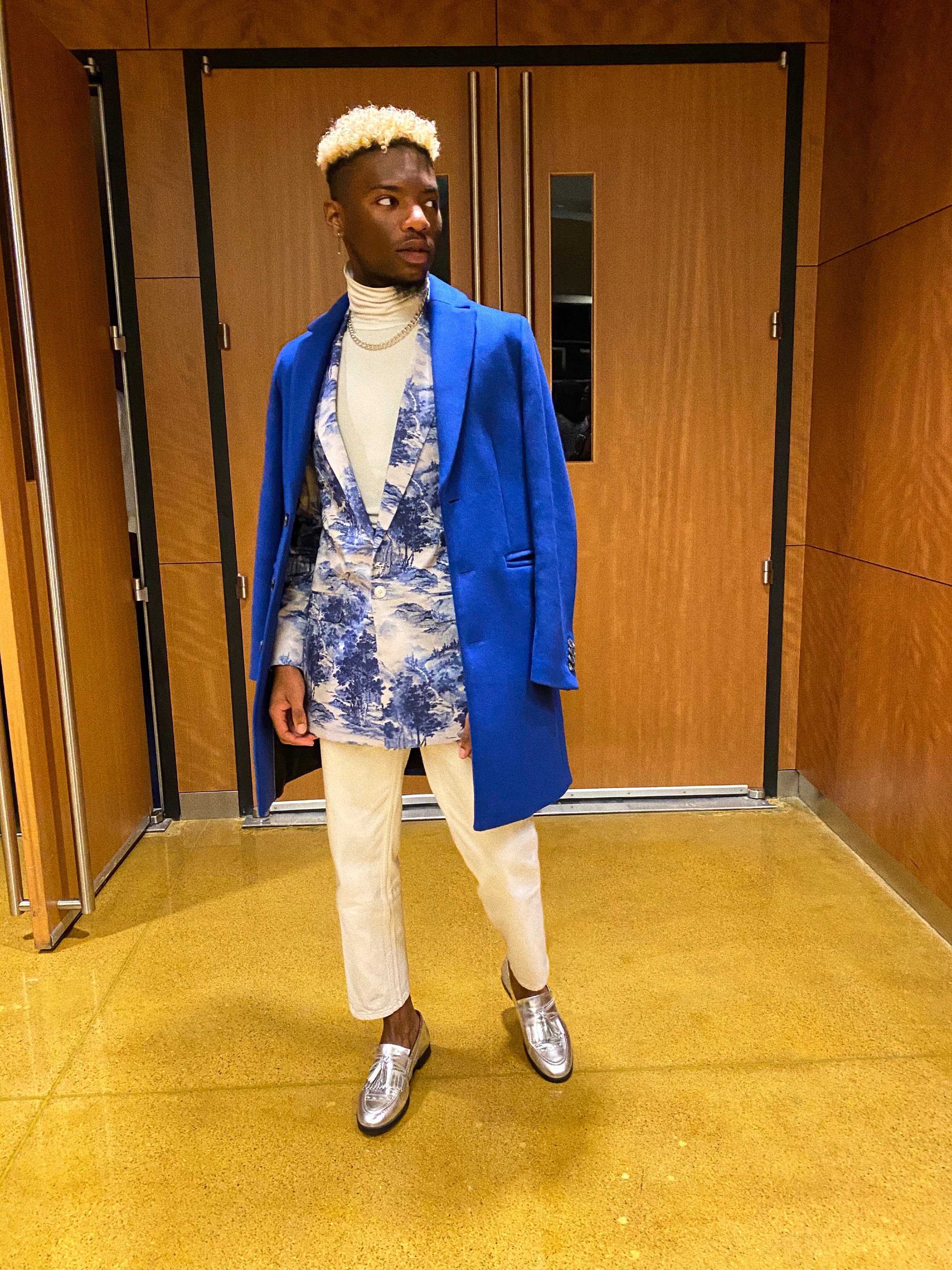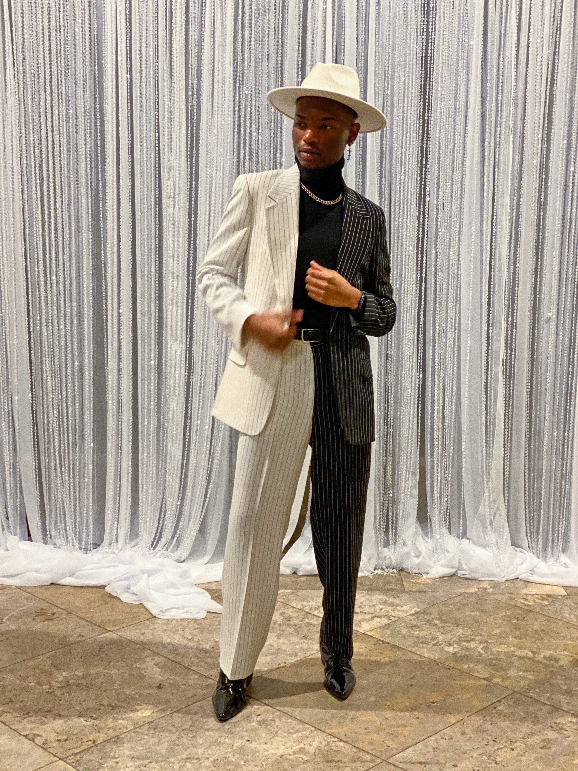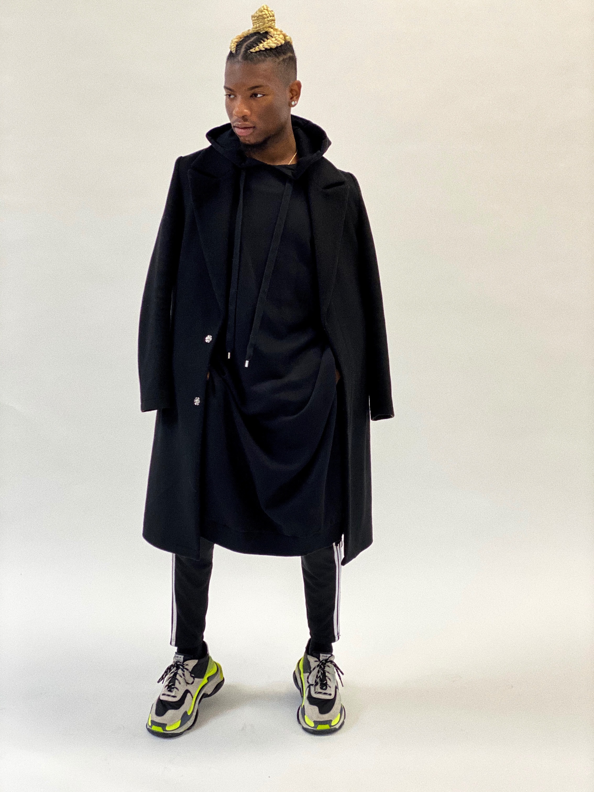 “My style is dynamic. I’ll go from a double-breasted suit and loafers to an over-sized look with sneakers. I let my clothes speak for me,” he states.