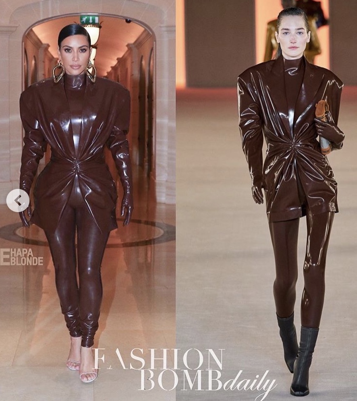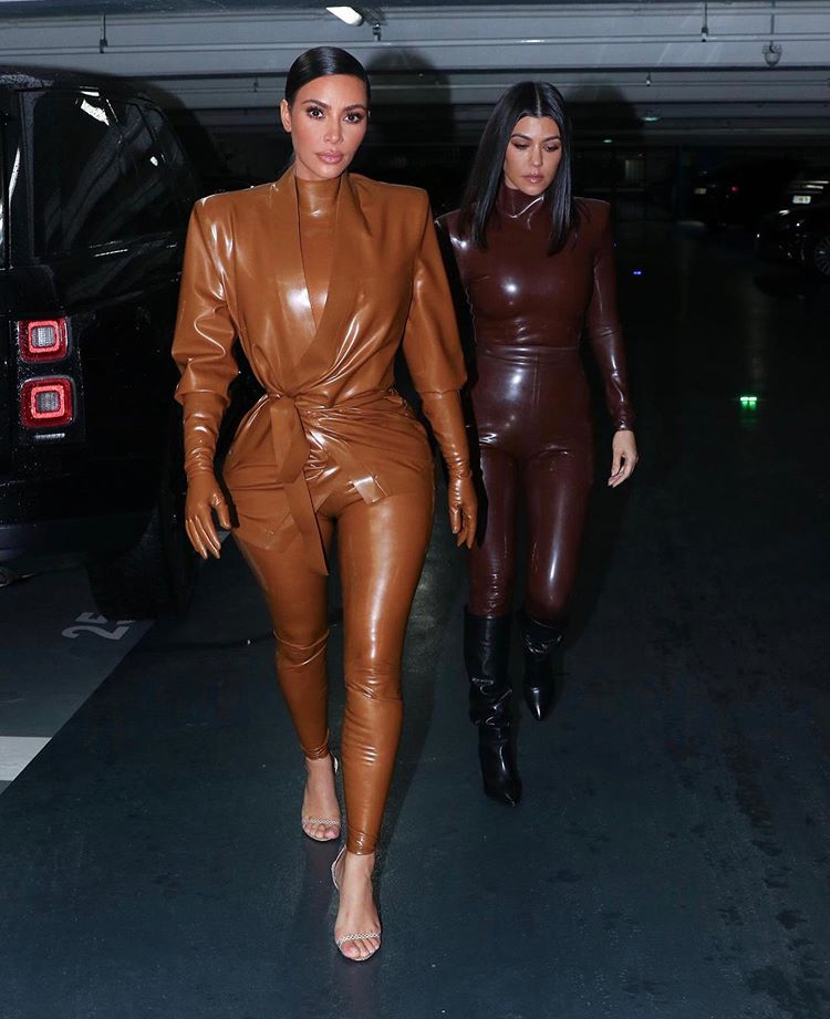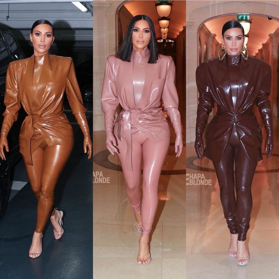 Fashion Week has to be our favorite time of the year, it always prepares us for what’s to come in the next season and it’s the time of year our favorite celebrities are stepping out in exclusive pieces. Kim Kardashian stepped out during fashion week in a brown, fresh off the runway, latex ensemble with matching jacket by Balmain. These pieces were premiered during their women’s show during Paris Fashion Week.