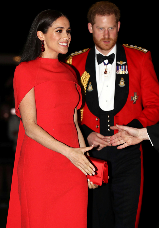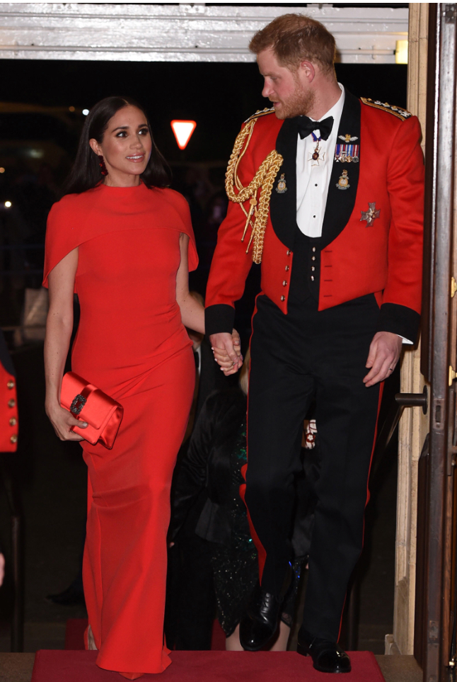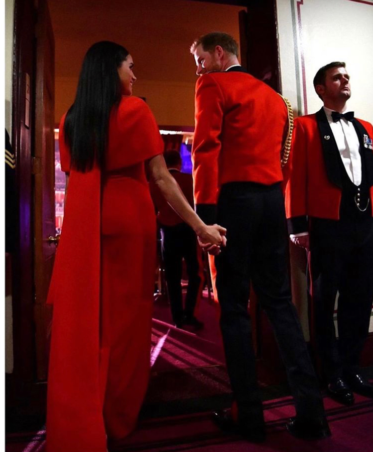 One of society’s favorite high profile celebrity couples made one heck of an appearance recently, in head turning complementing red ensembles. Beloved Prince Harry and Dutchess Meghan Markle attended the annual Mountbatten Music Festival at Royal Albert Hall on Saturday, as one of their final engagements fulfilling their royal duties. “The event marks the 75th anniversary of the end of World War II and the 80th anniversary of the formation of Britain’s Commandos, and it raises money for The Royal Marines Charity and CLIC Sargent.”