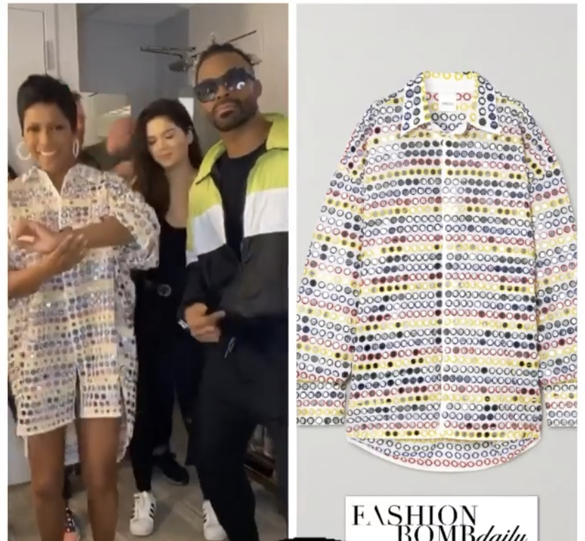 A lot of you had questions about the sparkly #shirtdress @tamronhall recently wore to do @hippypotter ‘s #hiteverybeat challenge for #tiktoktuesday ! @tatianasimone writes, “I couldn’t resist the ask! What dress is this Ms. Hall is rocking?” @pastortanyahart adds, “Hi I really need this dress, do you have?” @uniquewed was also looking for #tamronhall ‘s look! She wrote, “Where can we get this shirt dress?!” @tmendy_1867 says, “Who makes this shirt dress?”