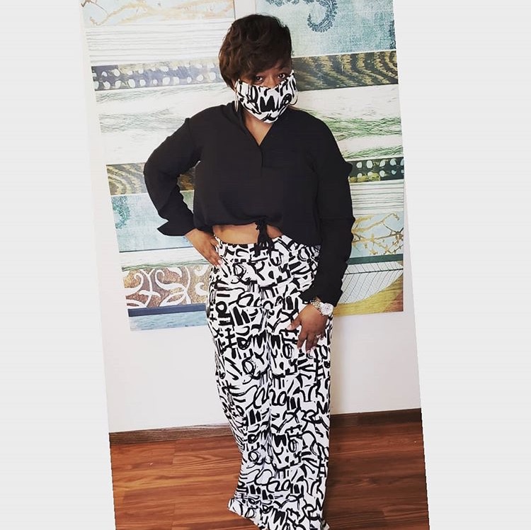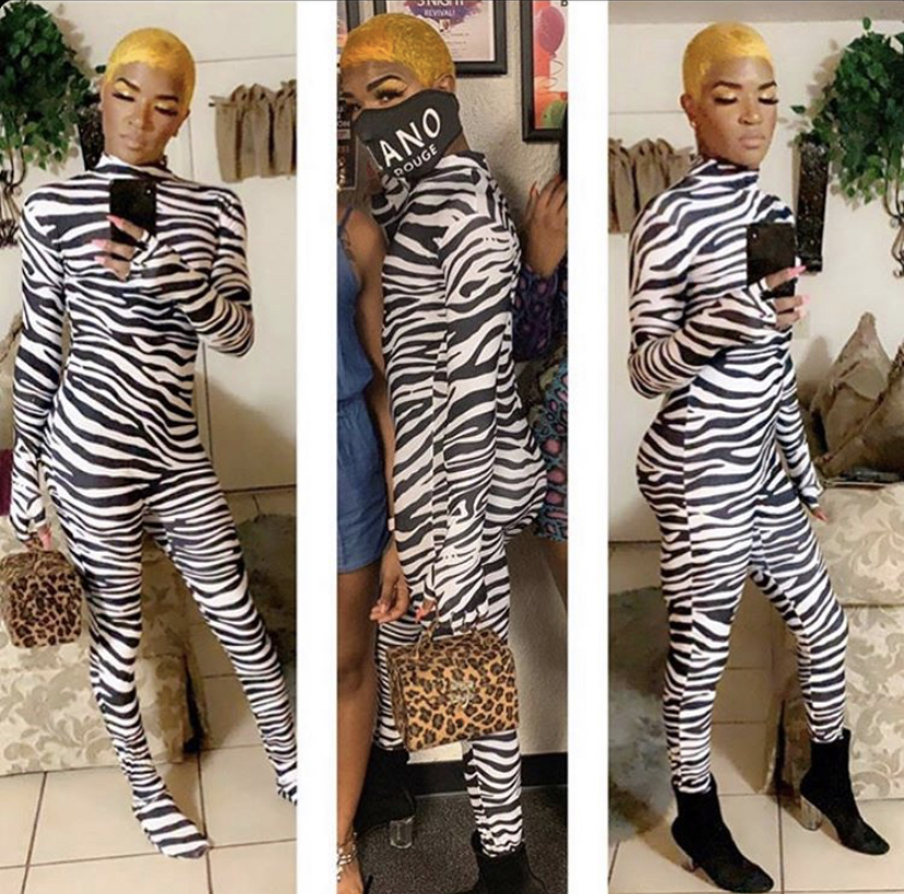 Lexis Minaj paired a zebra jumpsuit with a Milano Di Rouge face mask.