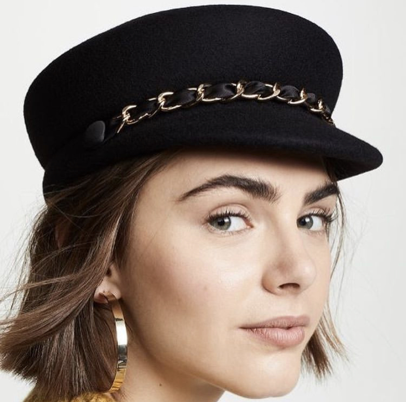 Bey’s black wool felt version is sold out, but you can get the hat in summery fabrics here.