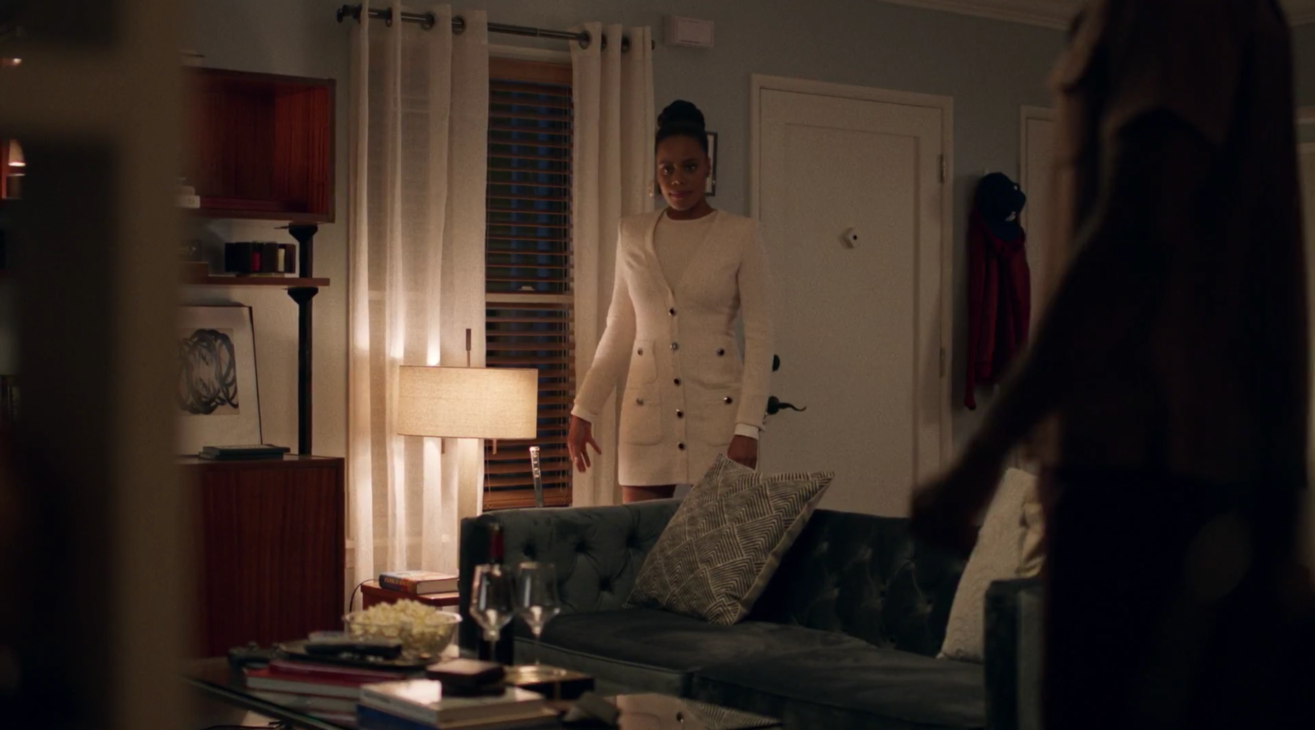 @Gagirlee writes, “Do you have any details from the looks on Insecure last night, especially Molly’s lime dress and green suit?” Molly looked fly for date night in a lime Dion Lee dress, and hit the office in a suit from Off White’s Resort 2020 collection: